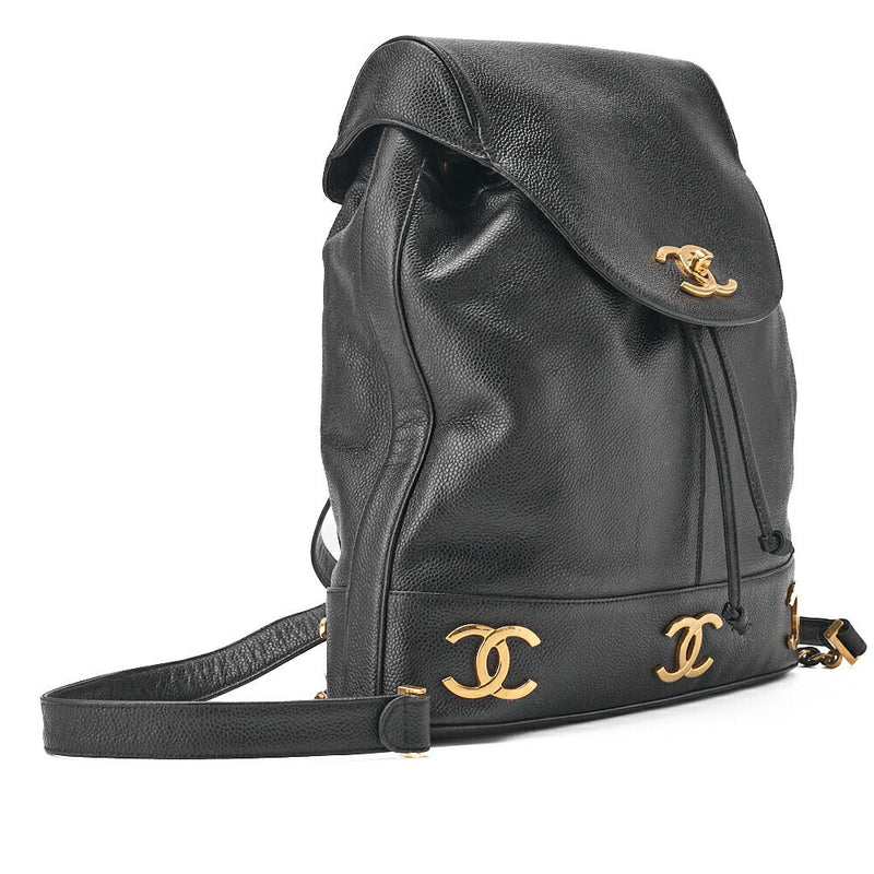 Pre-Owned Backpack Caviar Skin Triple Coco Turnlock Black Gold-Tone Hardware, Pre-Owned