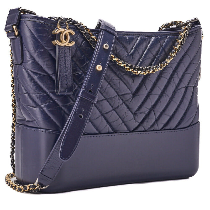 Pre-Owned Chain Shoulder Bag MatelassƩ Gabrielle de Navy Silver Gold-Tone Hardware, Pre-Owned