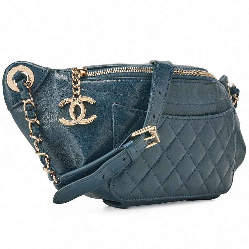 Pre-Owned Waist Bag MatelassƩ with Coco Charm Lambskin Blue Gold-Tone Hardware, Pre-Owned