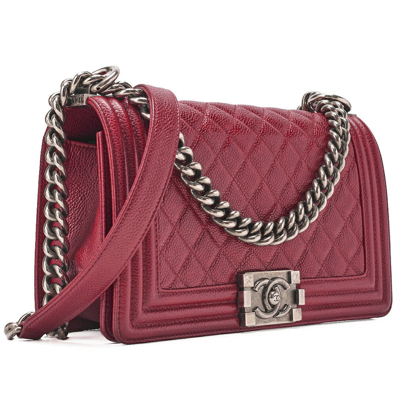 Pre-Owned Boy MatelassƩ Chain Shoulder Caviar Skin Red Silver-Tone Hardware, Pre-Owned
