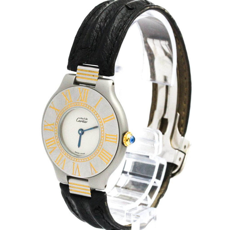 Pre-Owned CARTIER Must 21 Gold Plated Steel Leather Quartz Ladies Watch