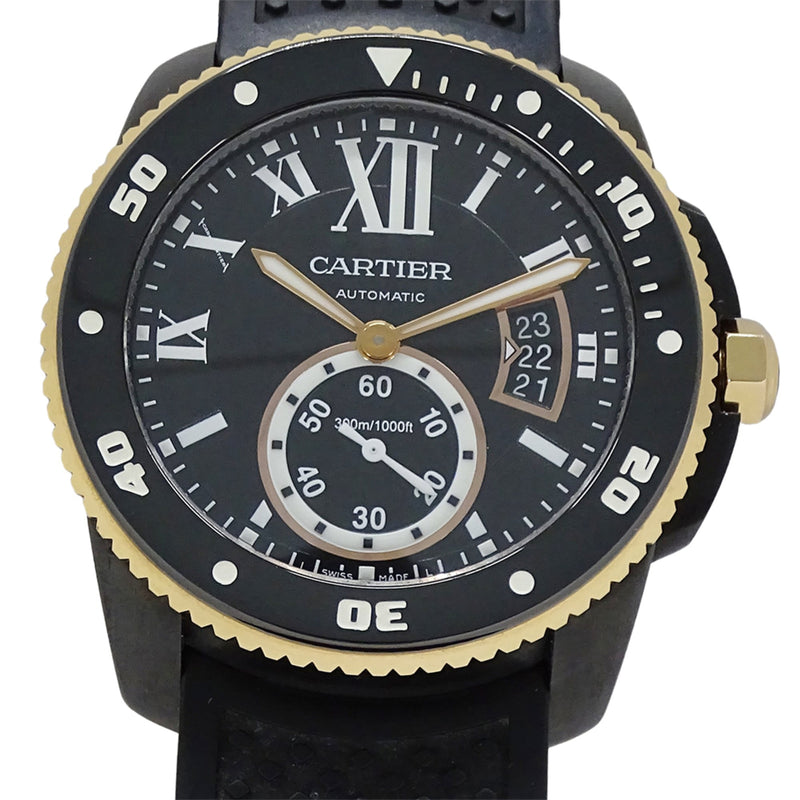 Pre-Owned Cartier Calibre Diver Men's Watch, Carbon Fiber, Date, Automatic, AT W2CA0004, Rubber, PG, Pink Gold, Black
