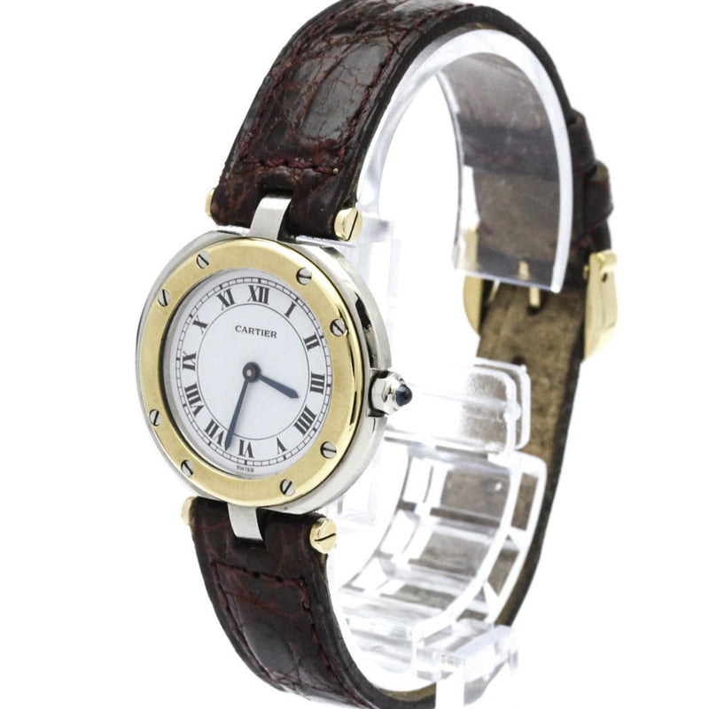 Pre-Owned CARTIER Santos Round 18K Gold Steel Leather Quartz Ladies Watch Polished