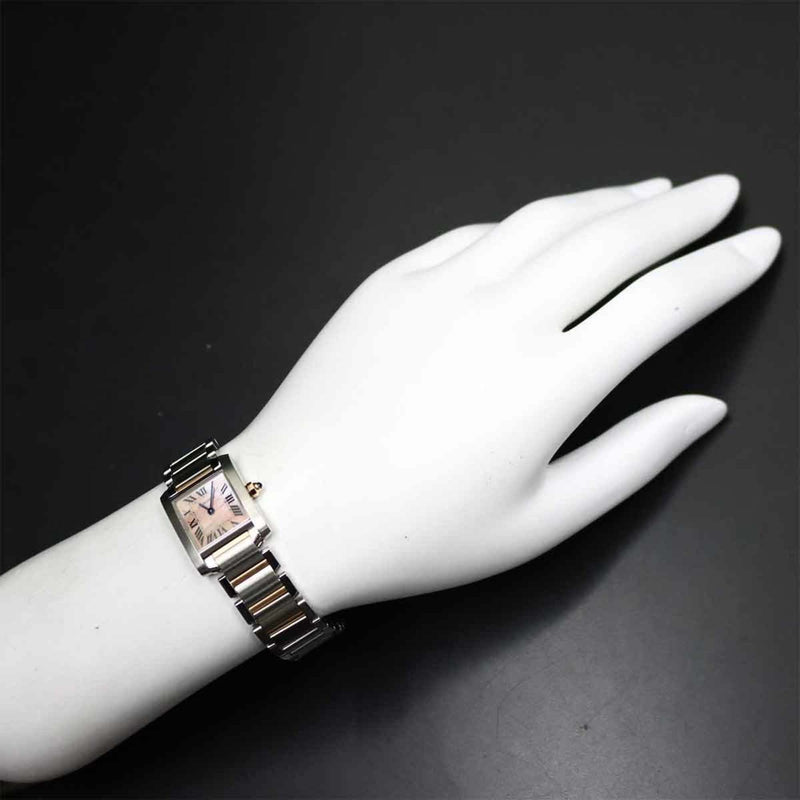 Pre-Owned Cartier Tank Fran?aise SM Two-tone Watch W51027Q4 Women's Pink Shell 18K Gold Quartz