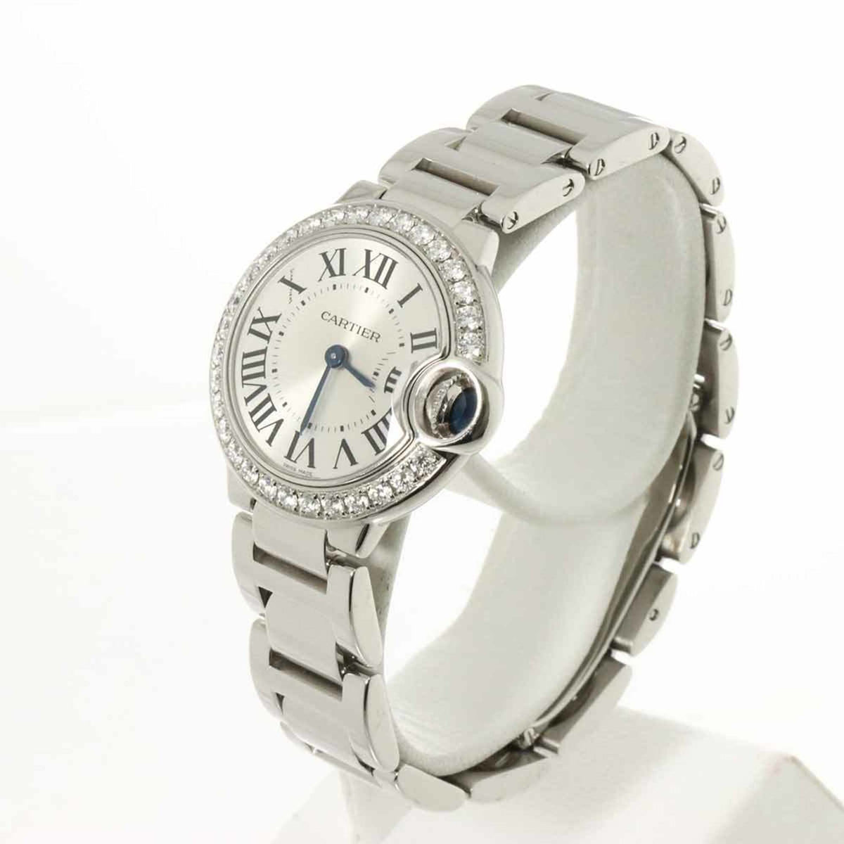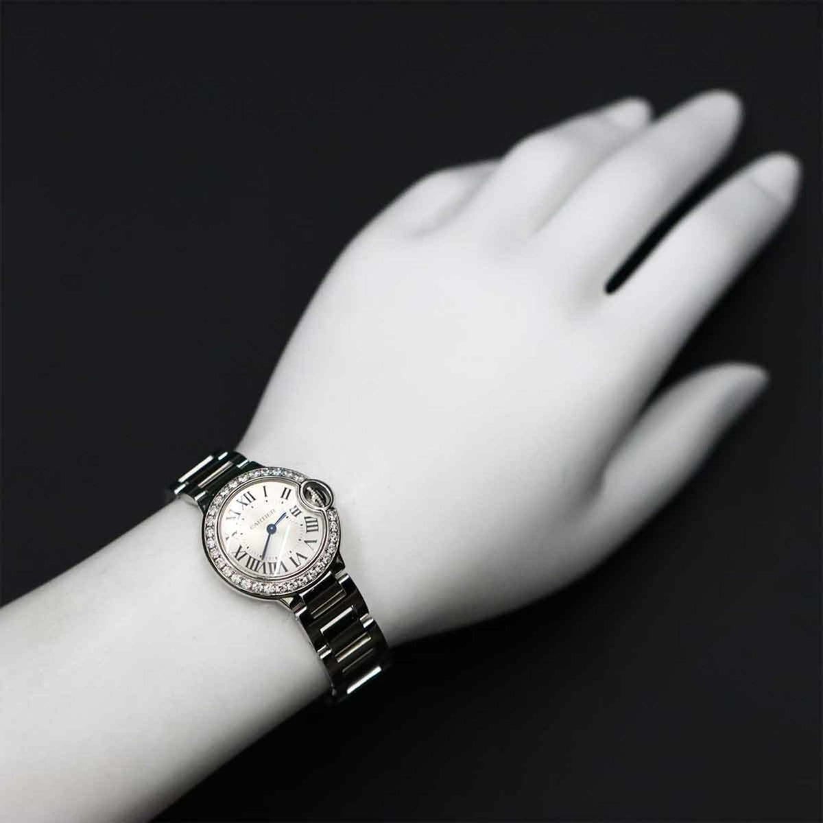 Pre-Owned Cartier Ballon Bleu 28mm WE9003Z3 Ladies' Watch Diamond Bezel Silver K18WG White Gold Solid Quartz