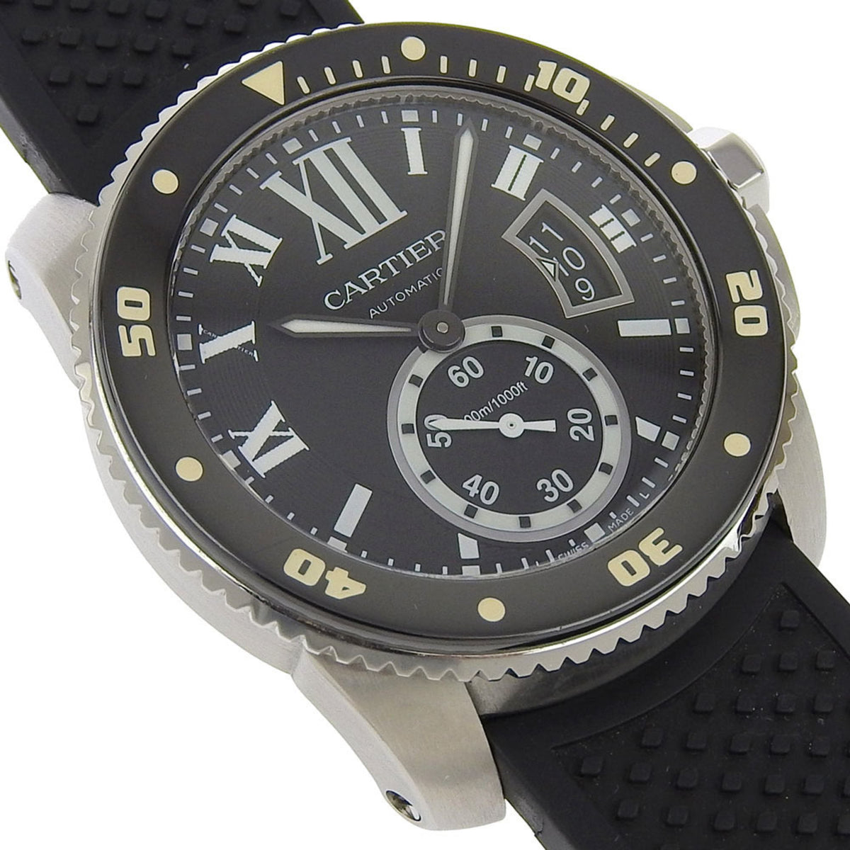Pre-Owned CARTIER Caliber Diver Wristwatch W7100056 Stainless Steel x Rubber Automatic Black Dial Men's
