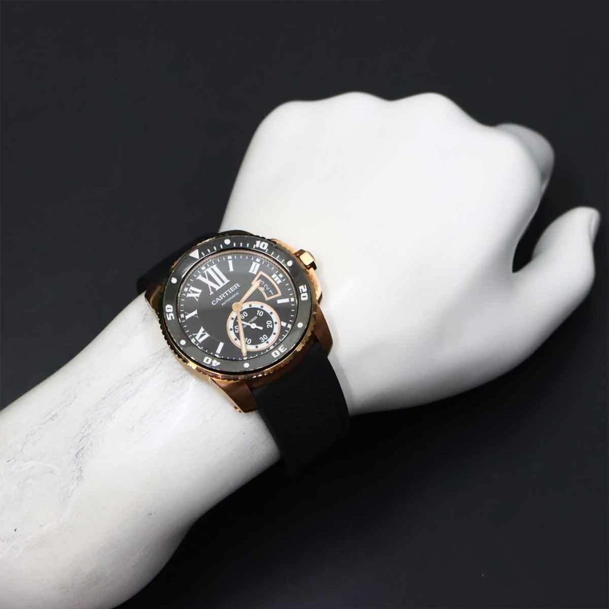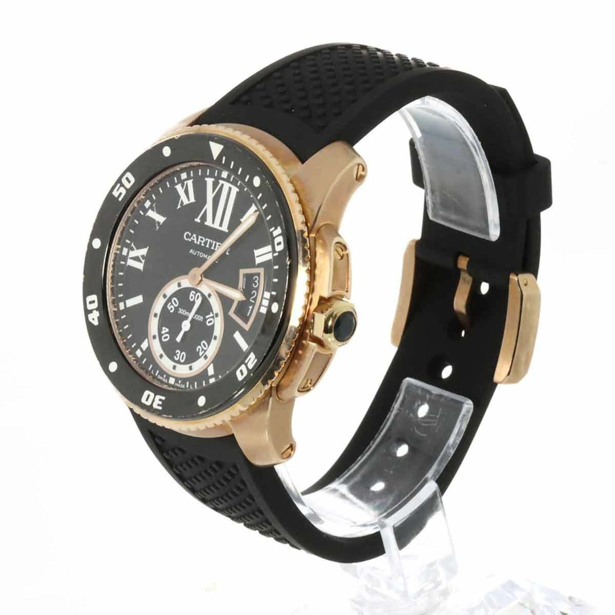Pre-Owned Cartier Calibre de Diver W7100052 Men's Watch with Date Display, Black 18K Pink Gold, Automatic