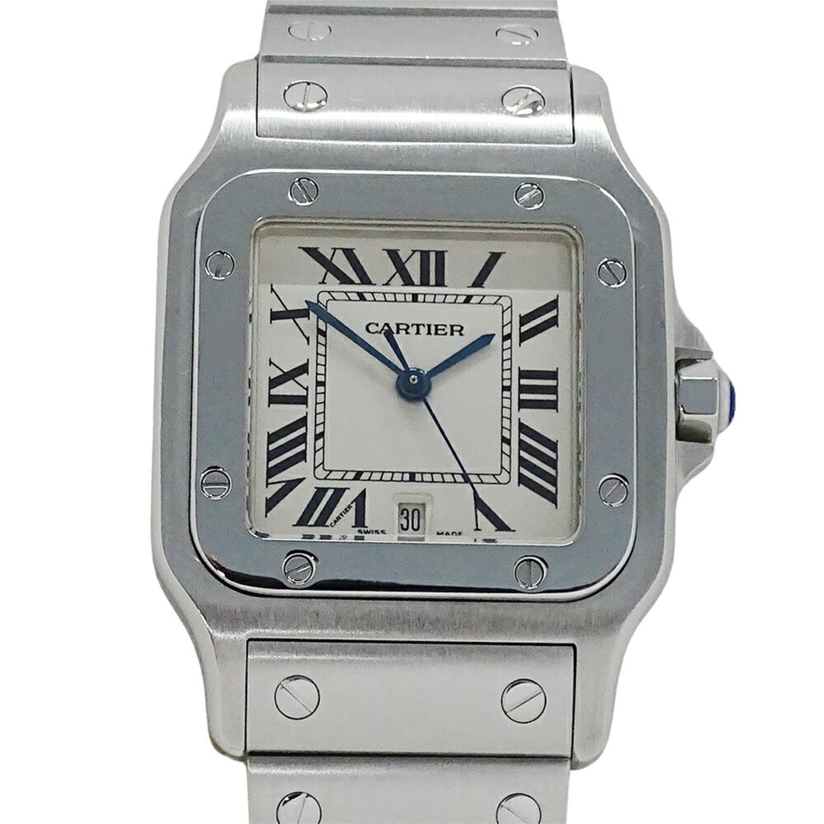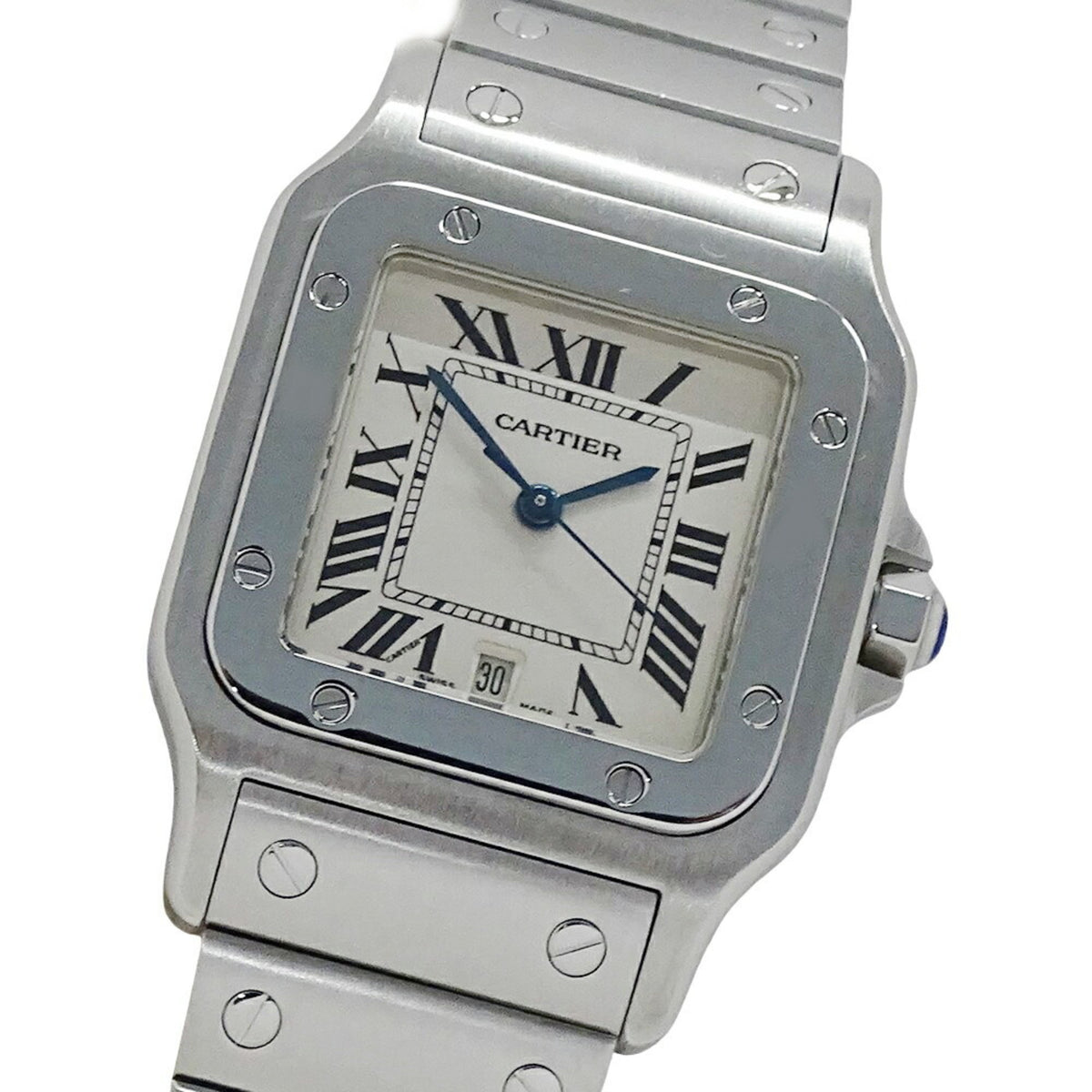 Pre-Owned Cartier Men's Santos Galbe LM Date Quartz Stainless Steel Watch W20060D6 Silver Ivory Polished