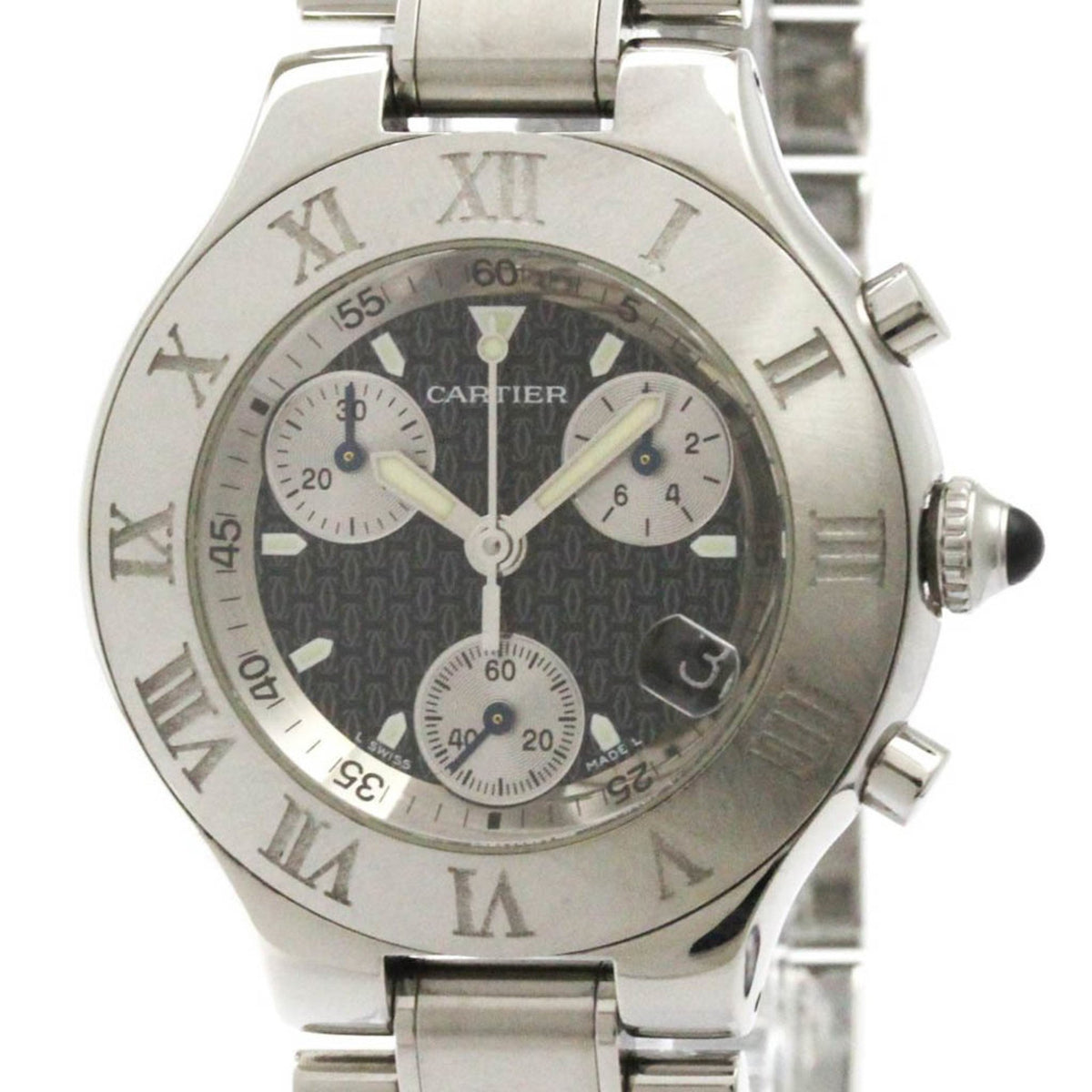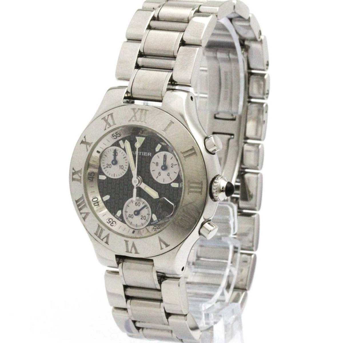 Pre-Owned CARTIER Must 21 Chronoscaph Steel Quartz Mens Watch W10172T2 Polished