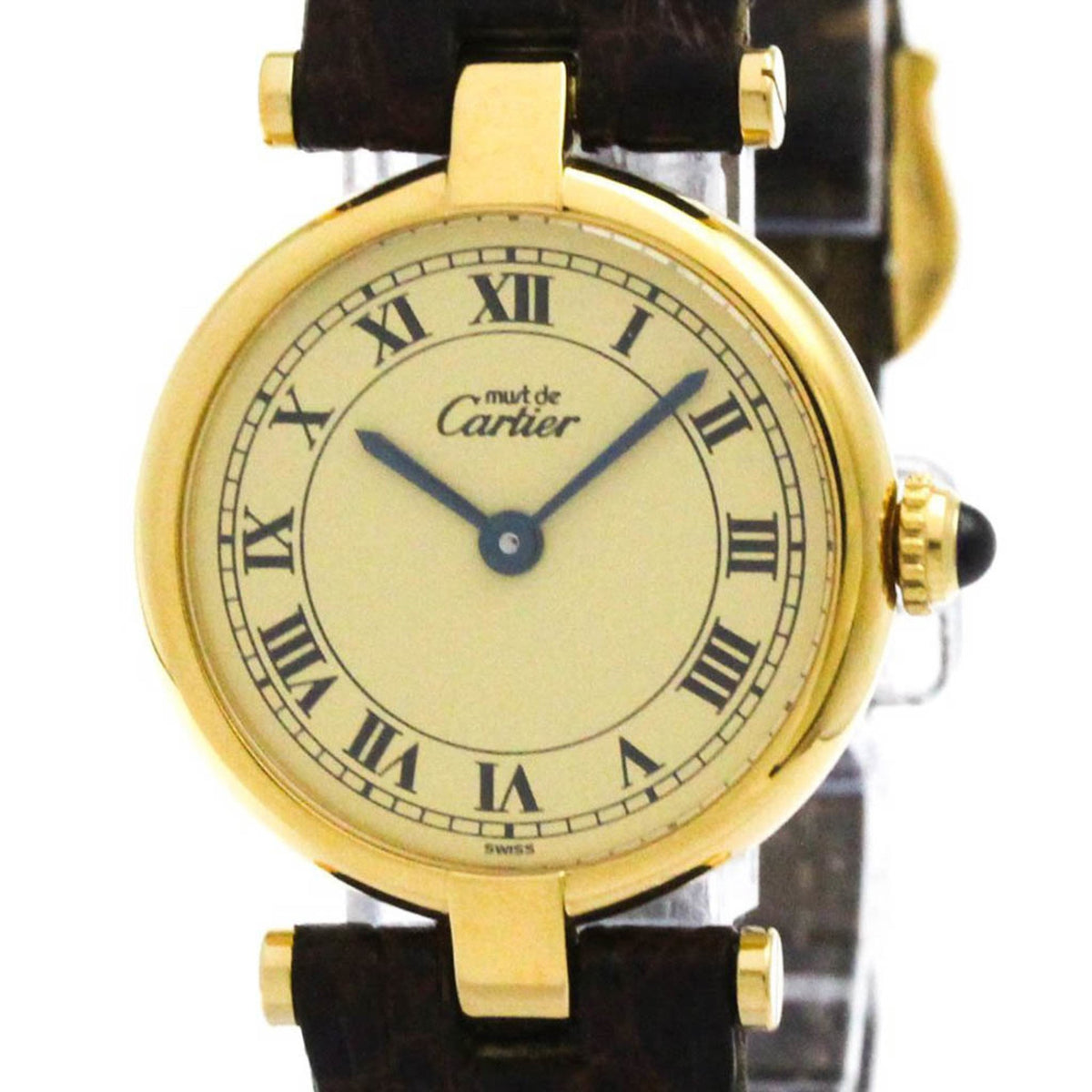 Pre-Owned CARTIER Must Gold Plated Leather Quartz Ladies Watch