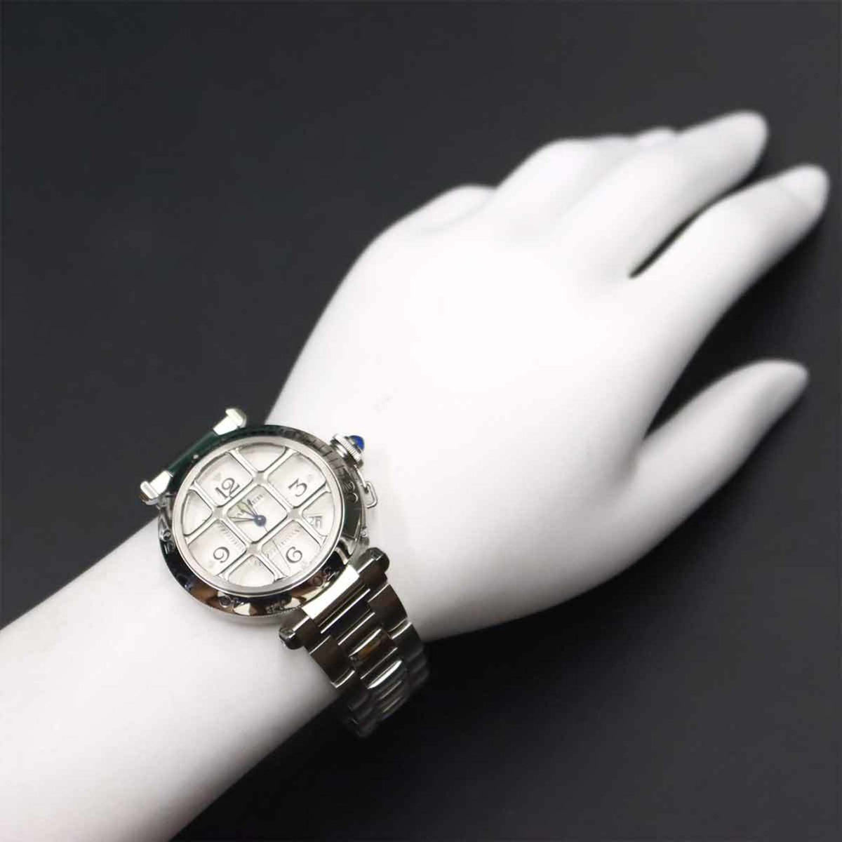 Pre-Owned Cartier Pasha 38mm Grid W31040H3 Men's Watch Date Silver Automatic Self-Winding