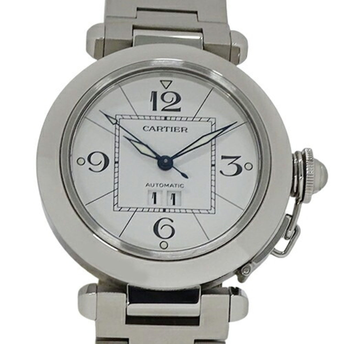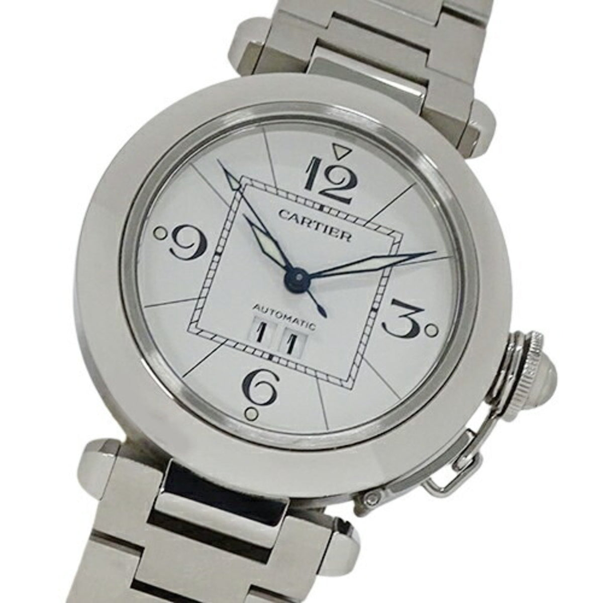 Pre-Owned Cartier Pasha C Big Date Automatic Watch for Boys AT Stainless Steel SS W31055M7 Silver White Polished