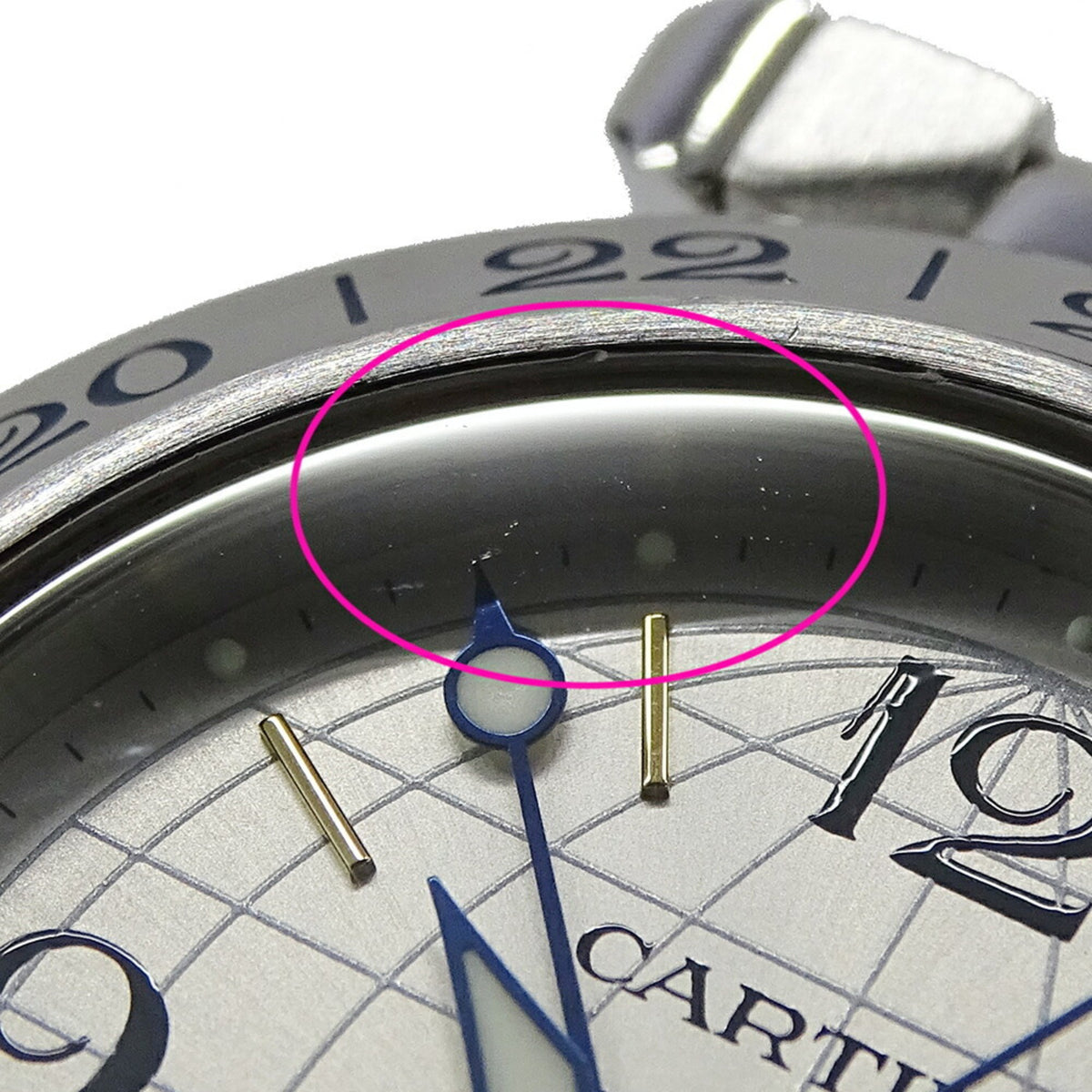 Pre-Owned Cartier Pasha C Meridian GMT Date Automatic Watch for Boys, Stainless Steel, W31029M7, Silver, Round, Polished