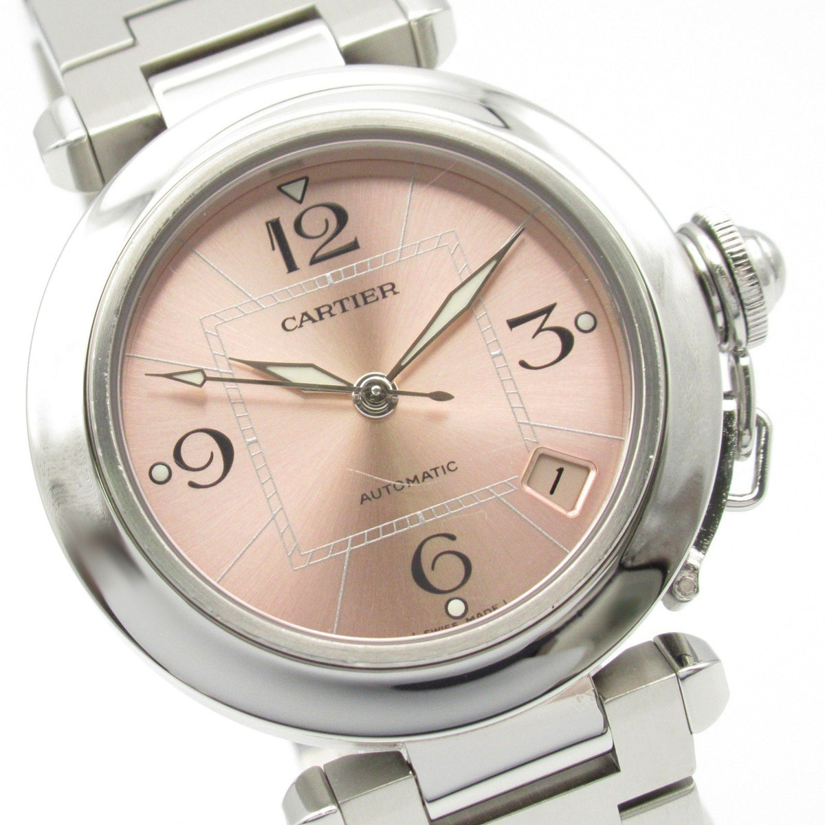 Pre-Owned Cartier Pasha C Small Date Watch Stainless Steel Boys Pink W31075M7