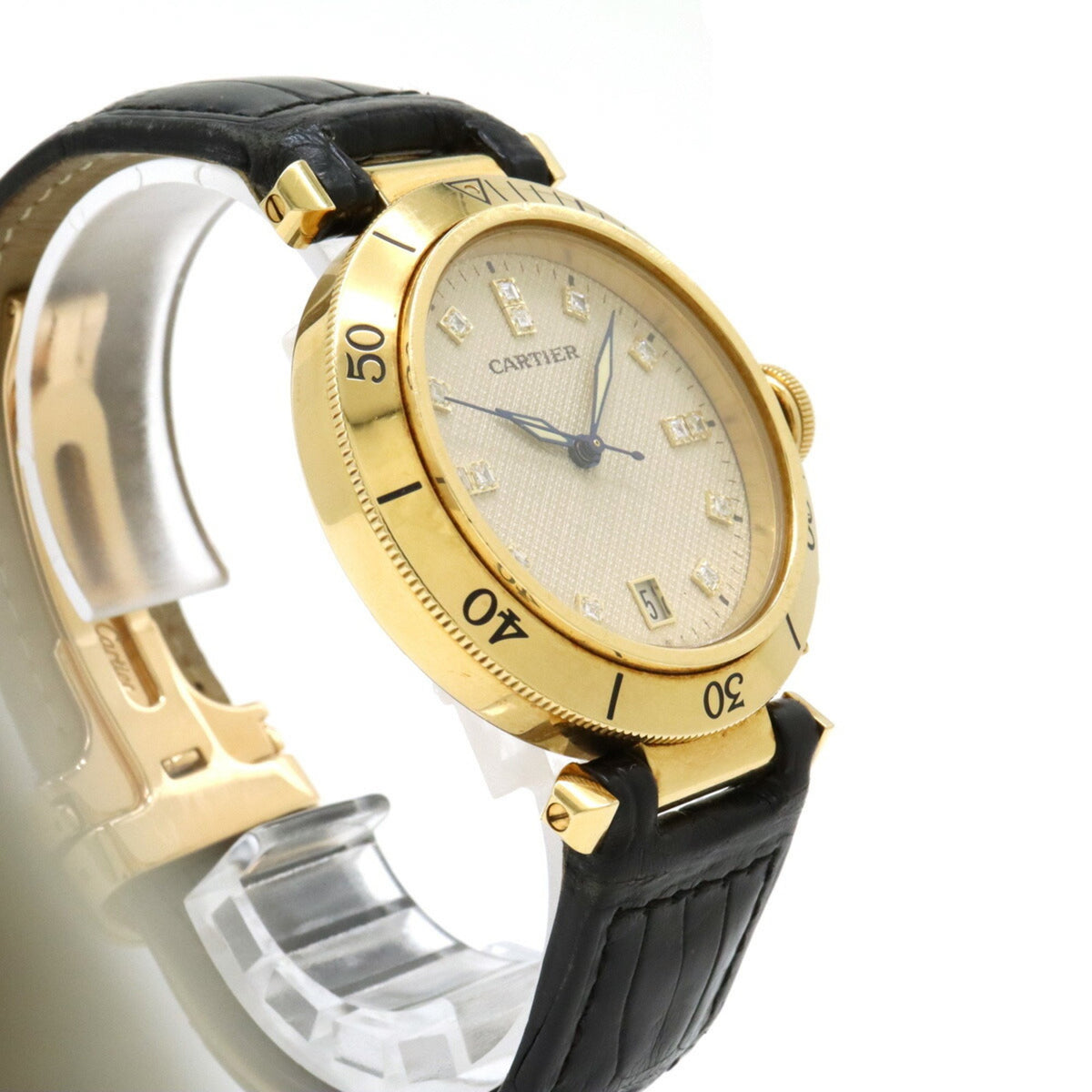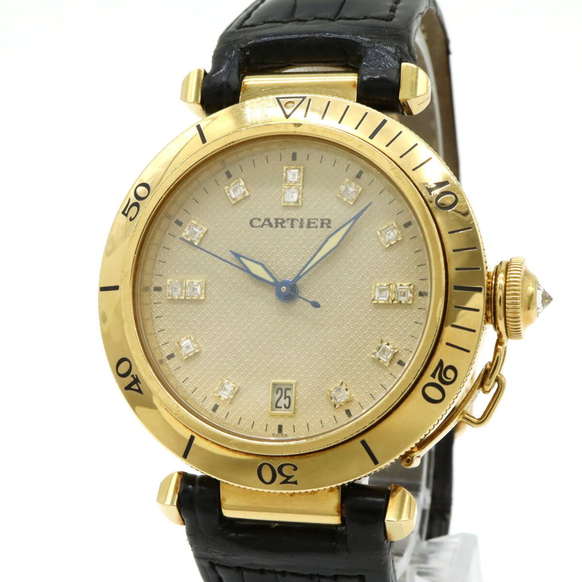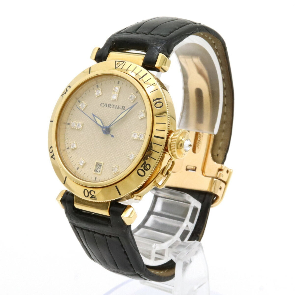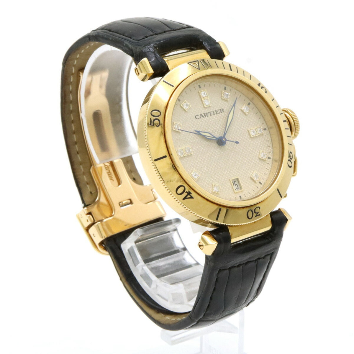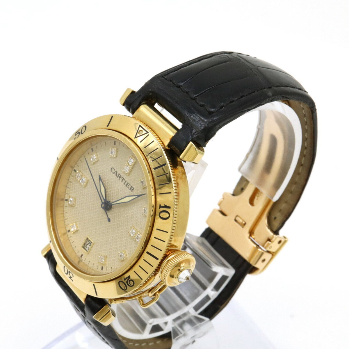 Pre-Owned Cartier Pasha Ivory Guilloche Dial 18K Yellow Gold Diamond AT Automatic Men's Watch W3010451