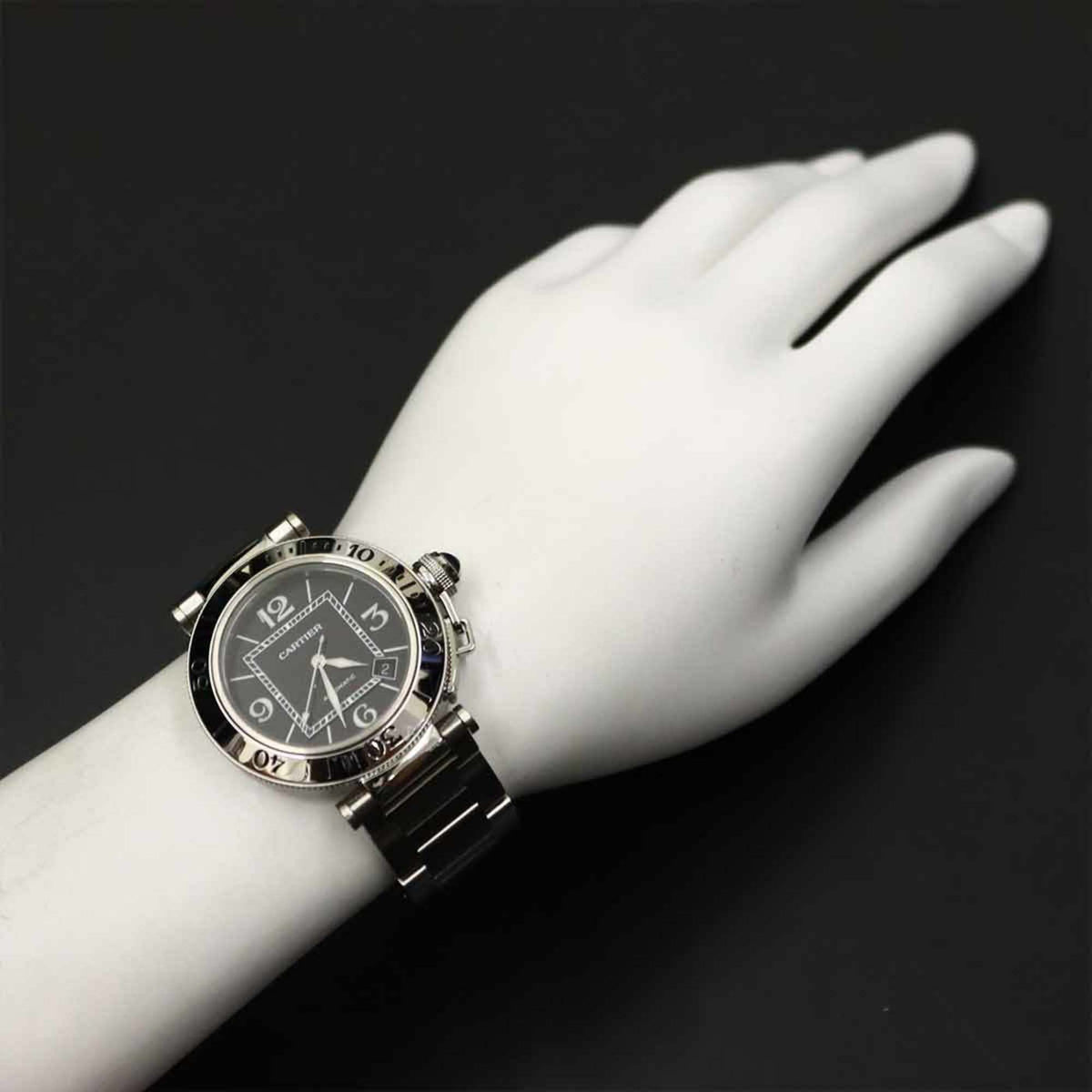 Pre-Owned Cartier Pasha Seatimer W31077M7 Men's Automatic Watch with Date Display, Black