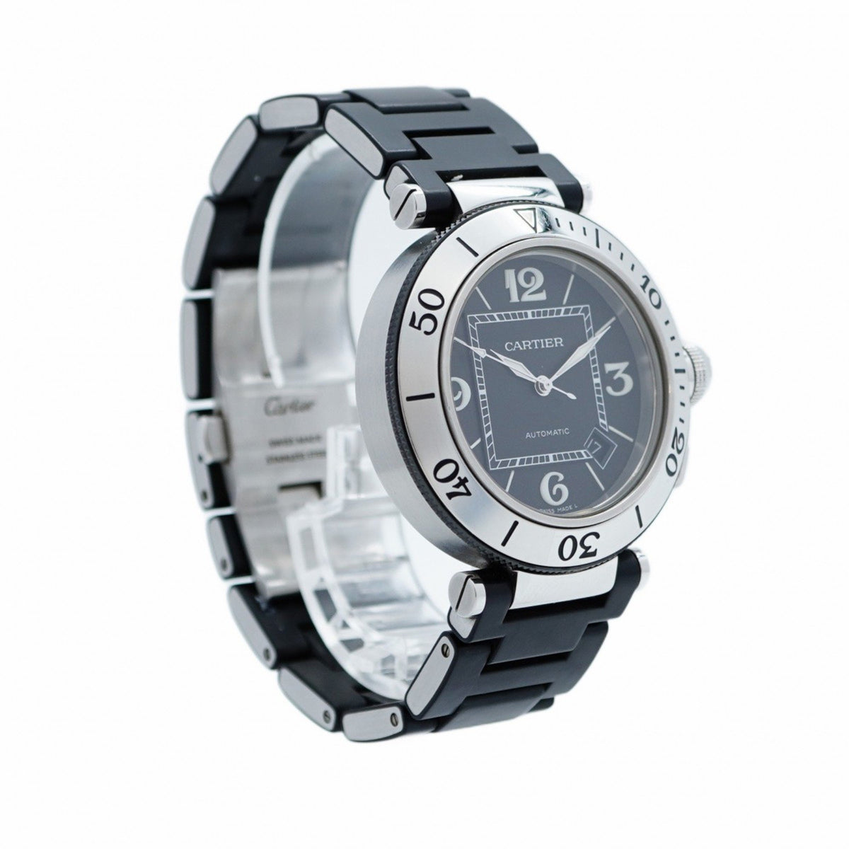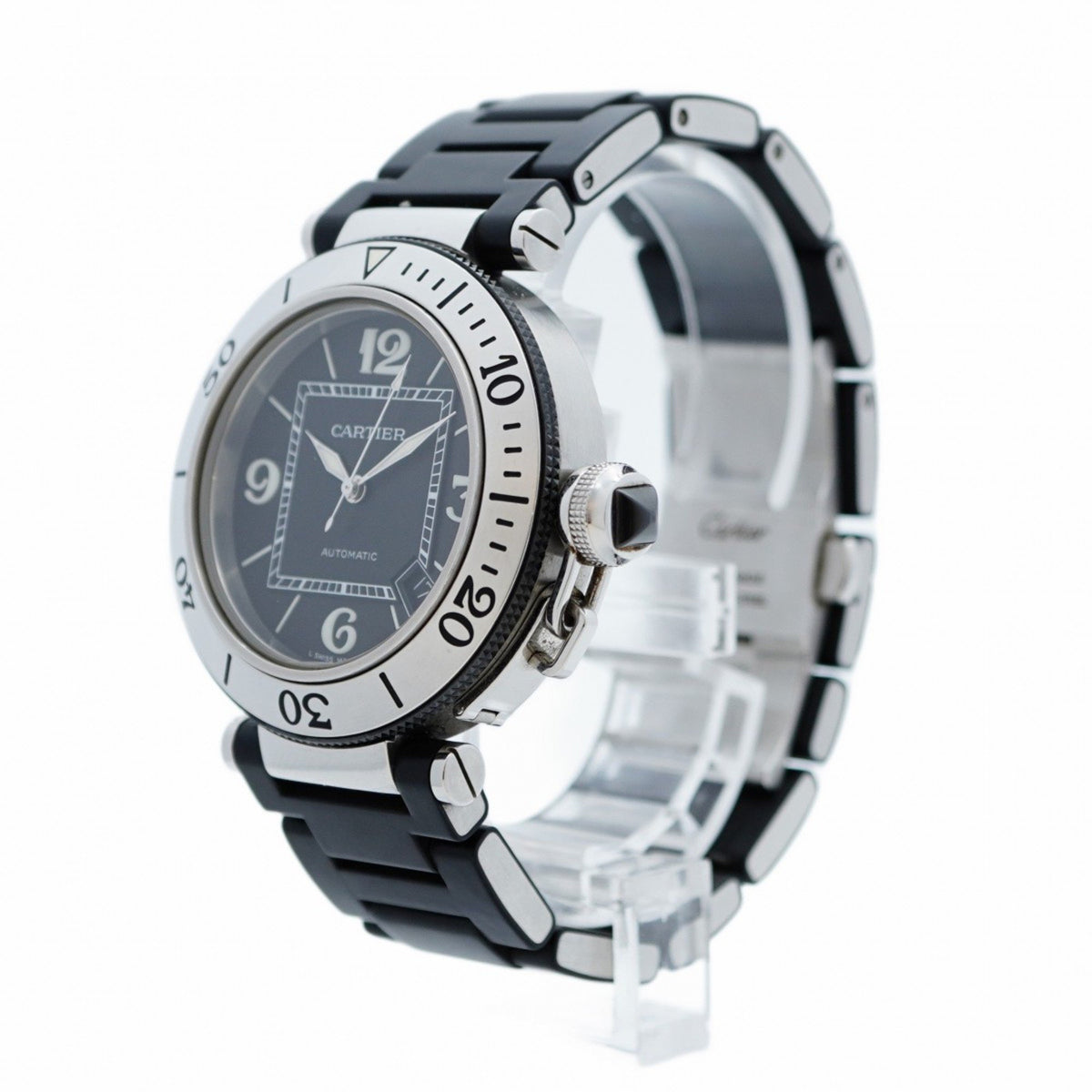 Pre-Owned Cartier Pasha Seatimer W31077U2 Black Dial Men's Watch