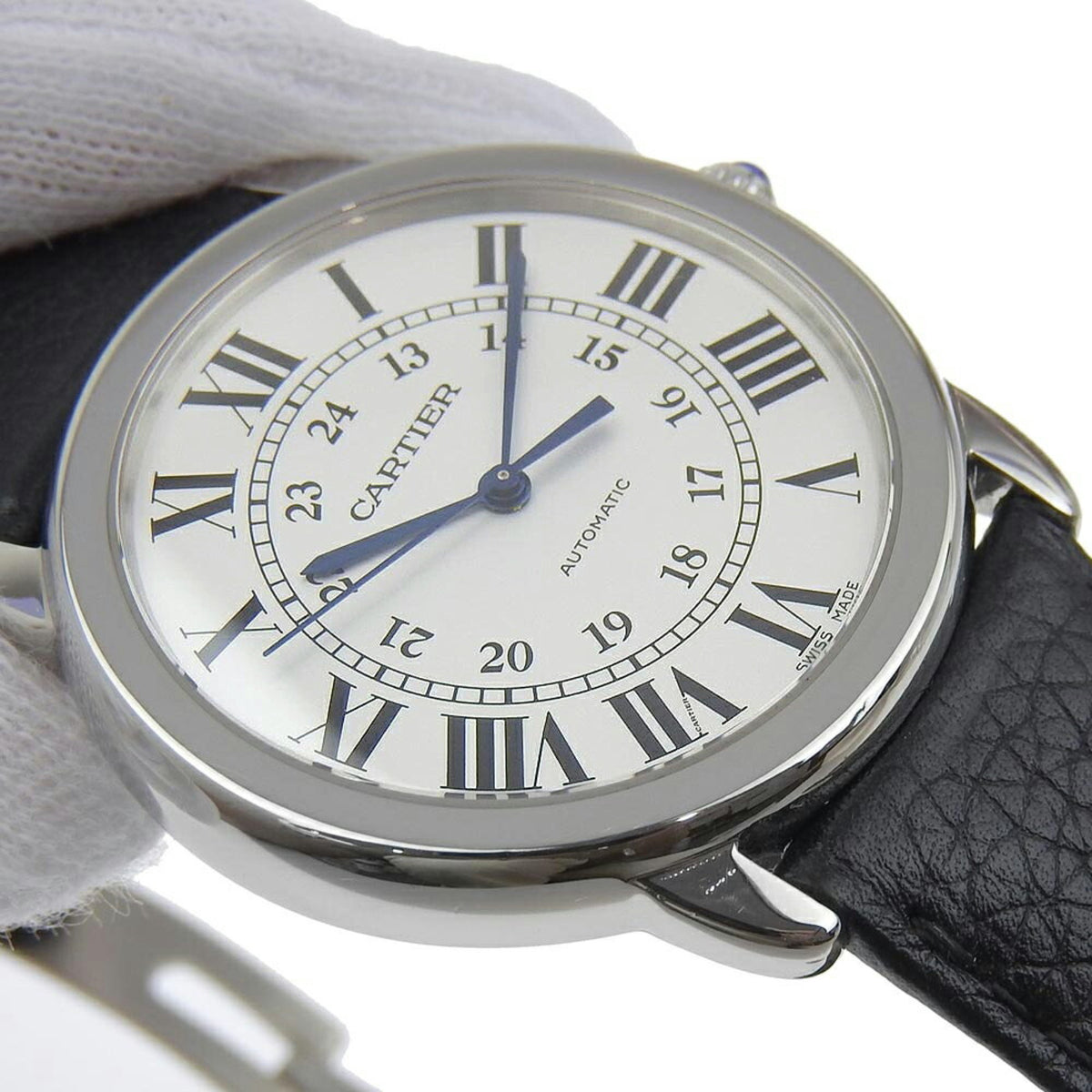 Pre-Owned Cartier Ronde Solo Watch WSRN0021 Stainless steel x embossed leather Automatic Silver dial Men's