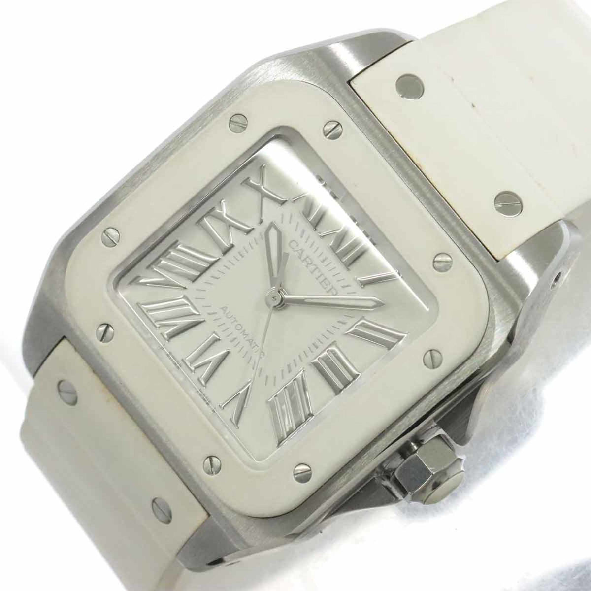 Pre-Owned Cartier Santos 100 MM W20122U2 Boys' Watch White Automatic