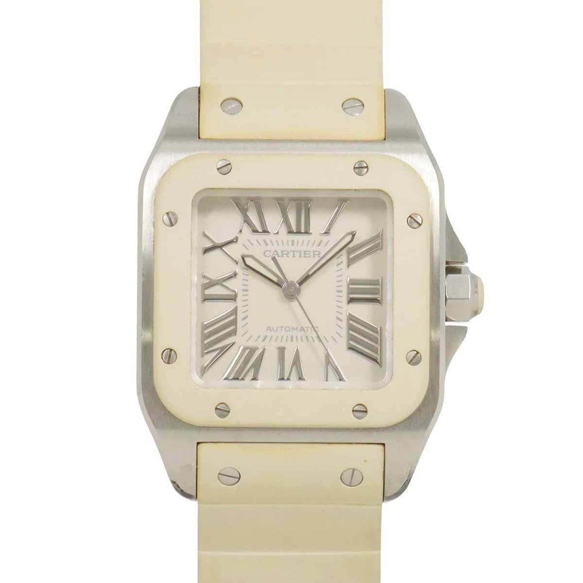 Pre-Owned Cartier Santos 100 MM W20122U2 Boys' White Automatic Watch