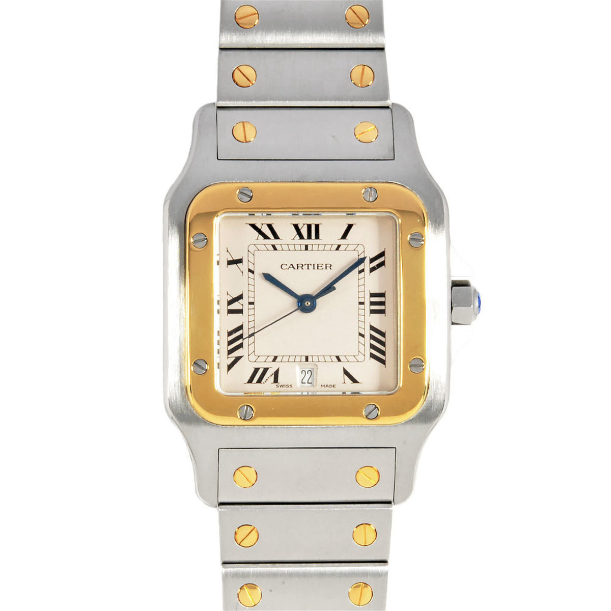 Pre-Owned Cartier Santos Galbe LM Watch Quartz Silver Dial YG SS Combination Men's