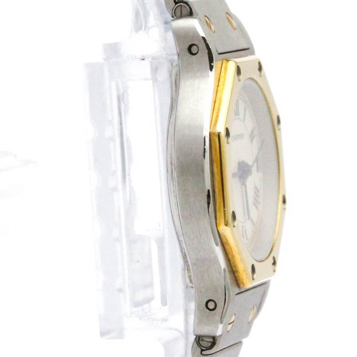 Pre-Owned CARTIER Santos Octagon 18K Gold Steel Quartz Ladies Watch 187903 Polished