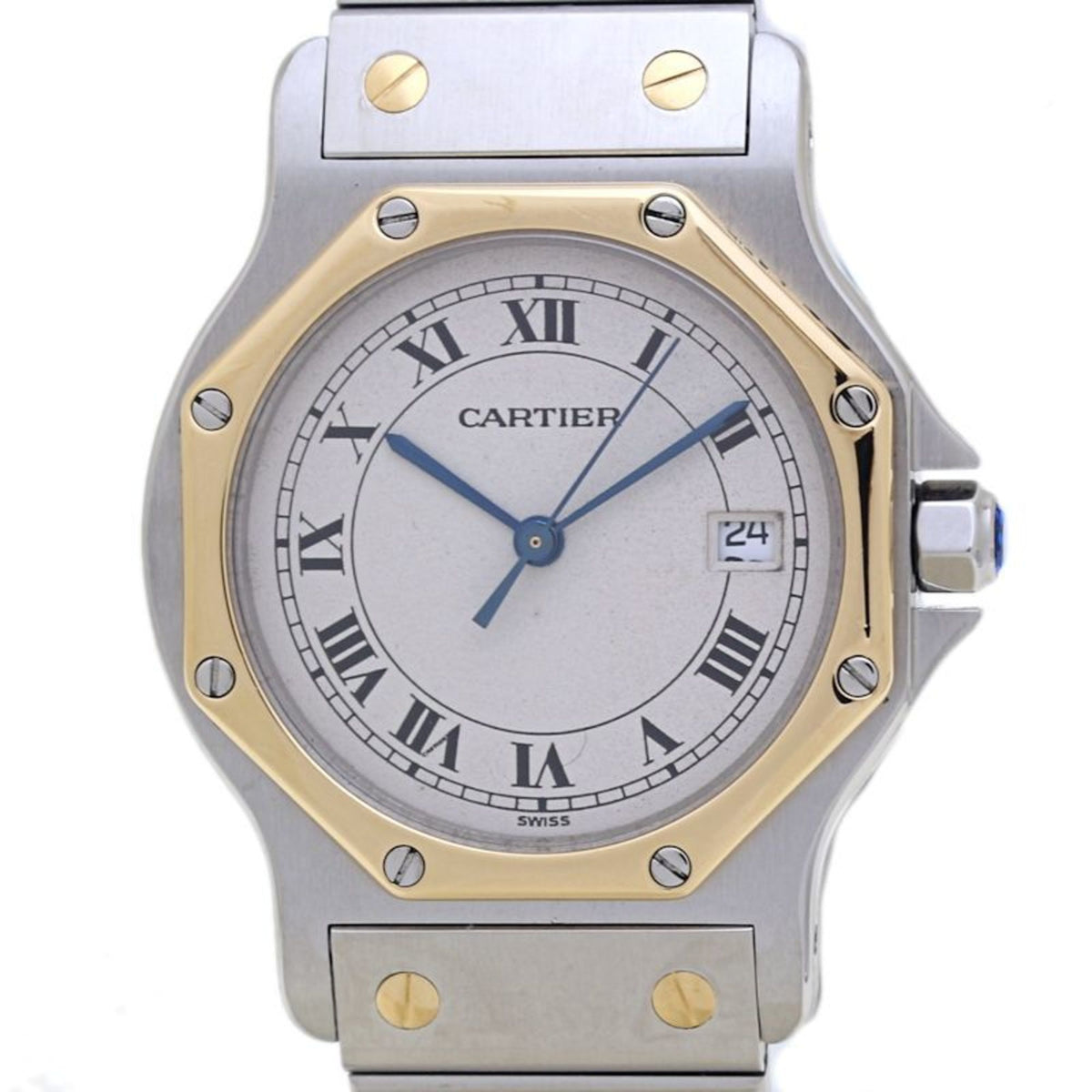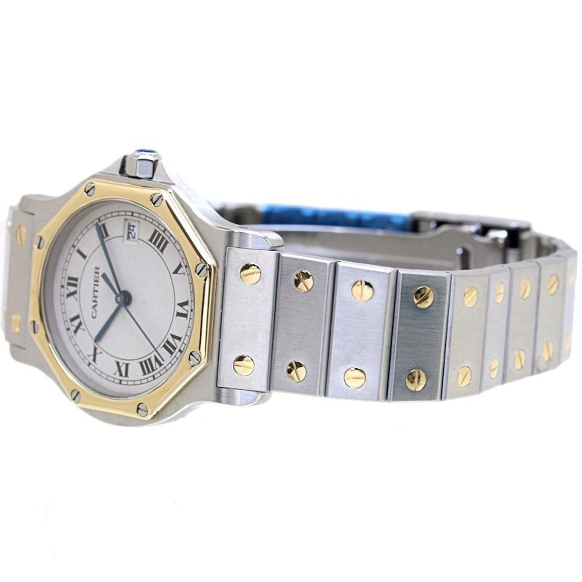 Pre-Owned CARTIER Santos Octagon LM W2001583 with old buckle, stainless steel and 18K yellow gold, women's watch, 40023