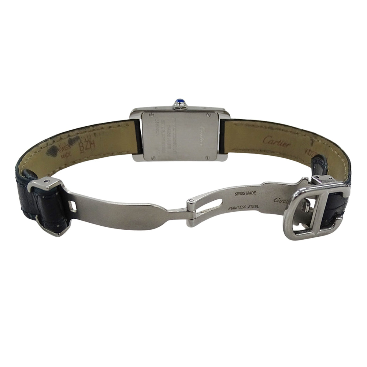 Pre-Owned Cartier Tank Am?ricaine SM Quartz Watch for Women, WSTA0016, Stainless Steel, Leather, Silver, Black, Square, Polished