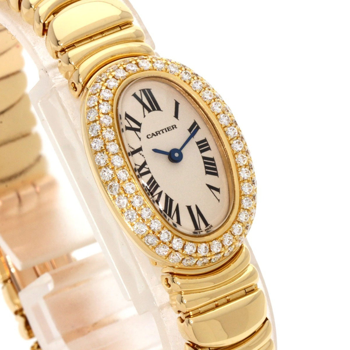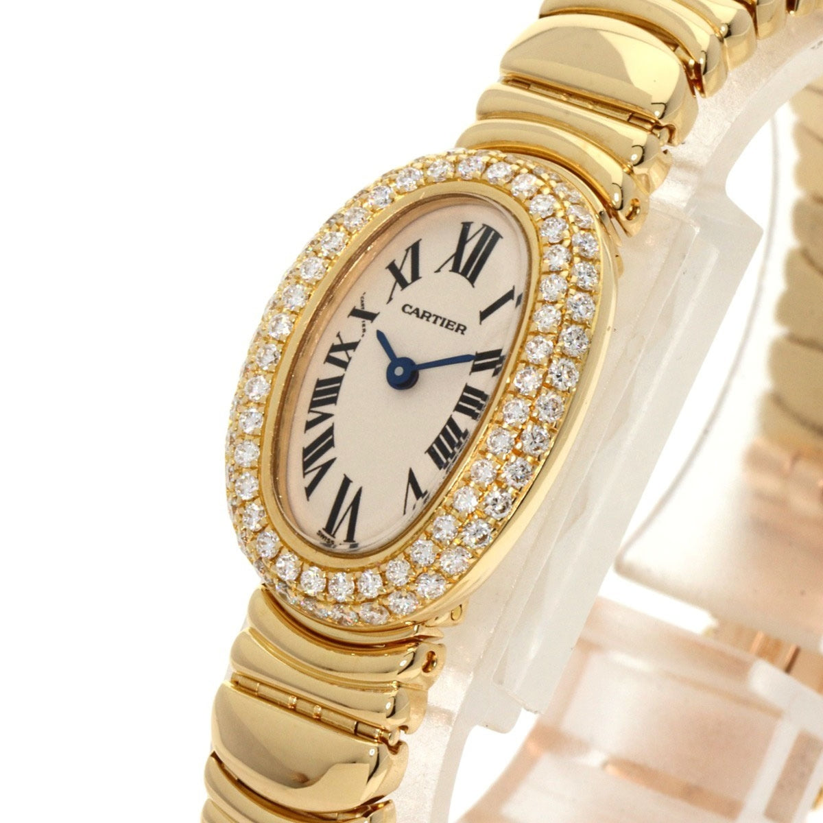 Pre-Owned Cartier WB5094D8 Mini Baignoire Bezel Diamond Watch 18K Yellow Gold K18YG Ladies CARTIER