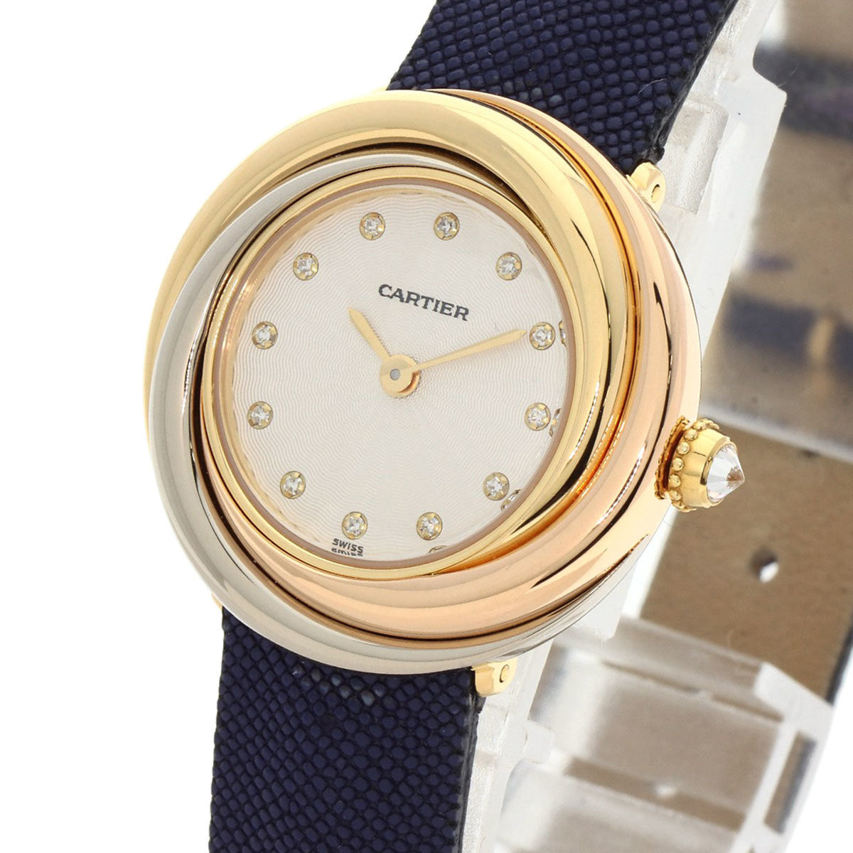 Pre-Owned Cartier WG200256 Trinity 12P Diamond Watch, 18K/Leather/18K Three-Tone, Women's