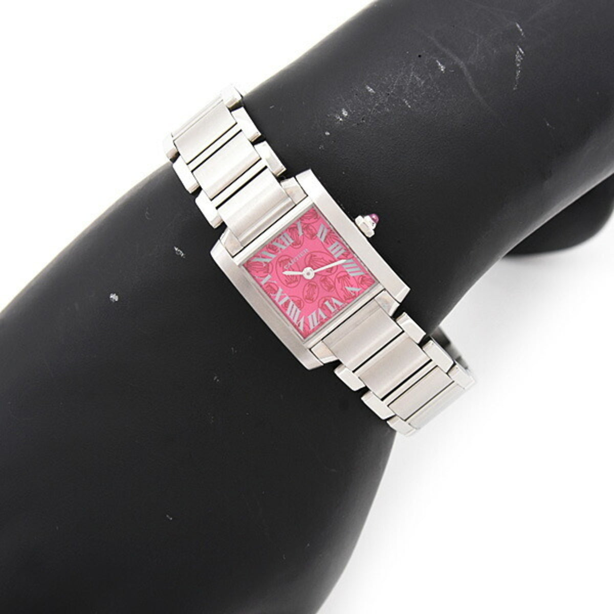 Pre-Owned Cartier Women's Tank Fran?aise Small Watch, 2006 Limited Edition, Raspberry Pink Dial, Battery-Operated, Stainless Steel, W51030Q3