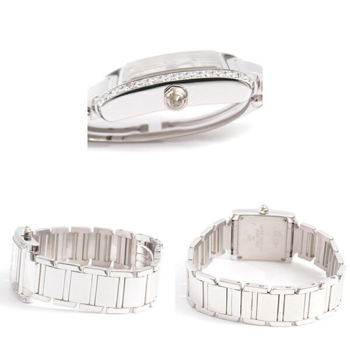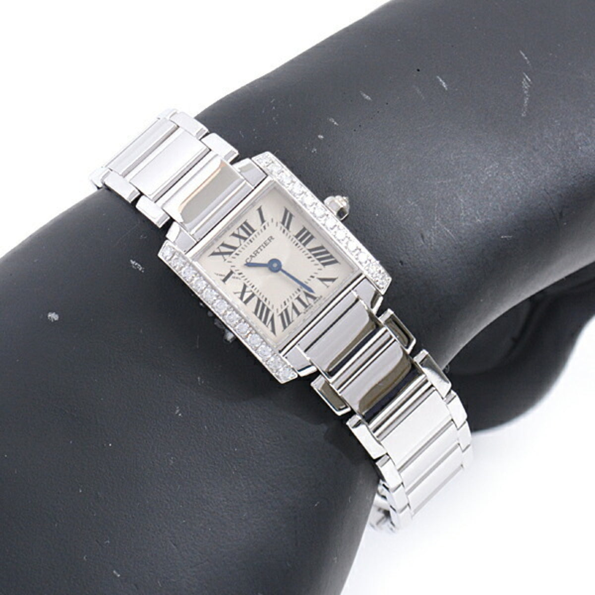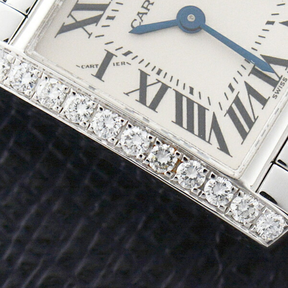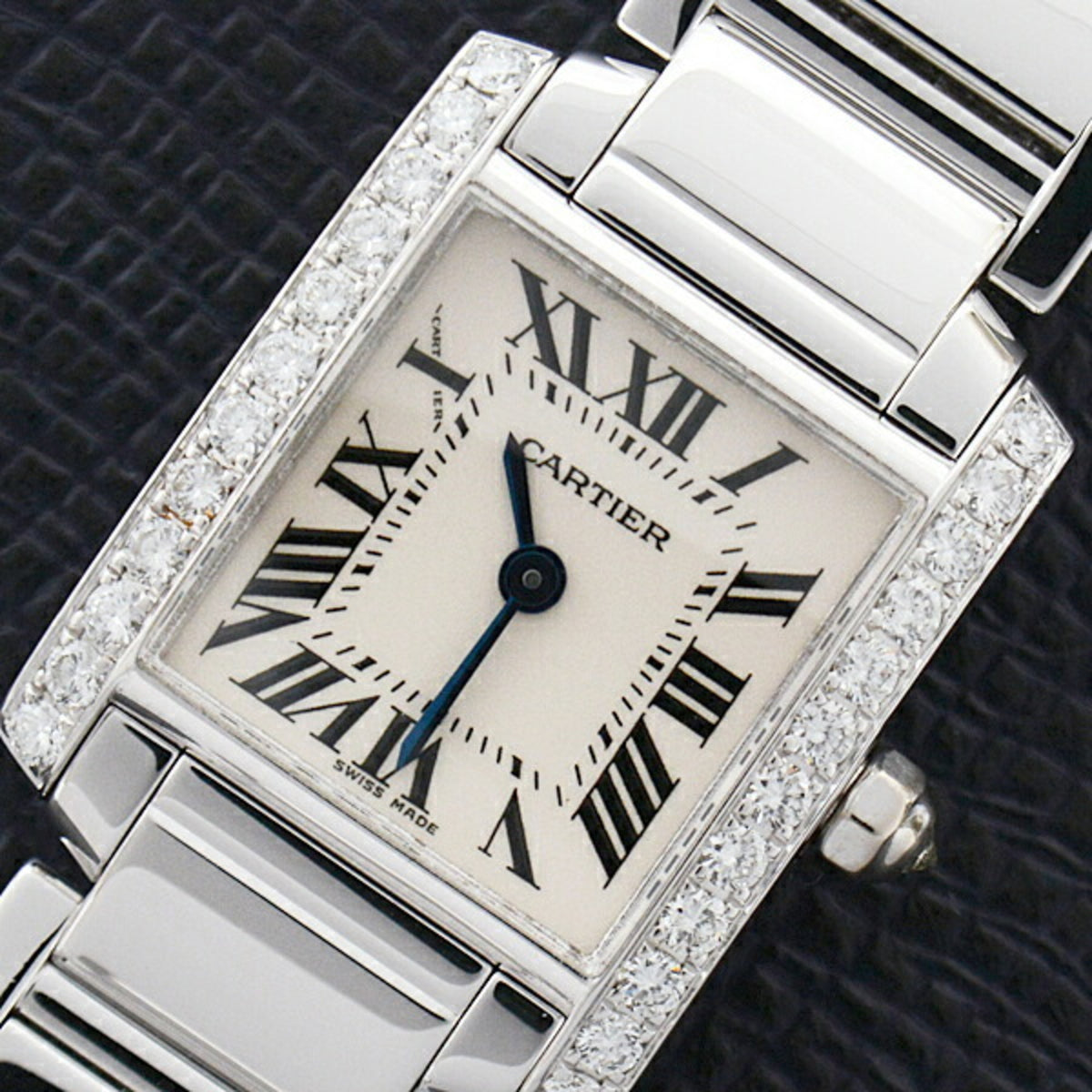 Pre-Owned Cartier Women's Watch Tank Francaise SM Genuine Diamond Bezel Battery Operated Ivory Dial White Gold 750WG W50012S3