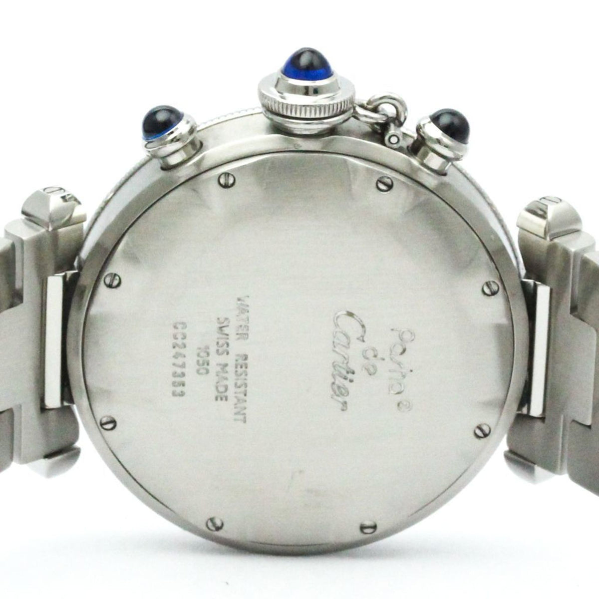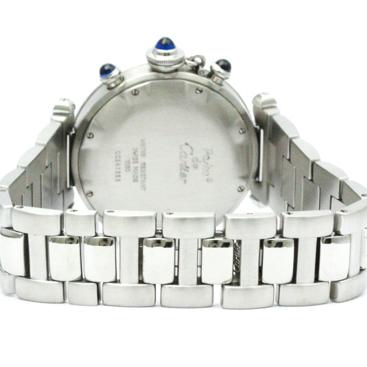 Pre-Owned Polished CARTIER Pasha 38 Chronograph Steel Quartz Mens Watch W31018H3 BF574125