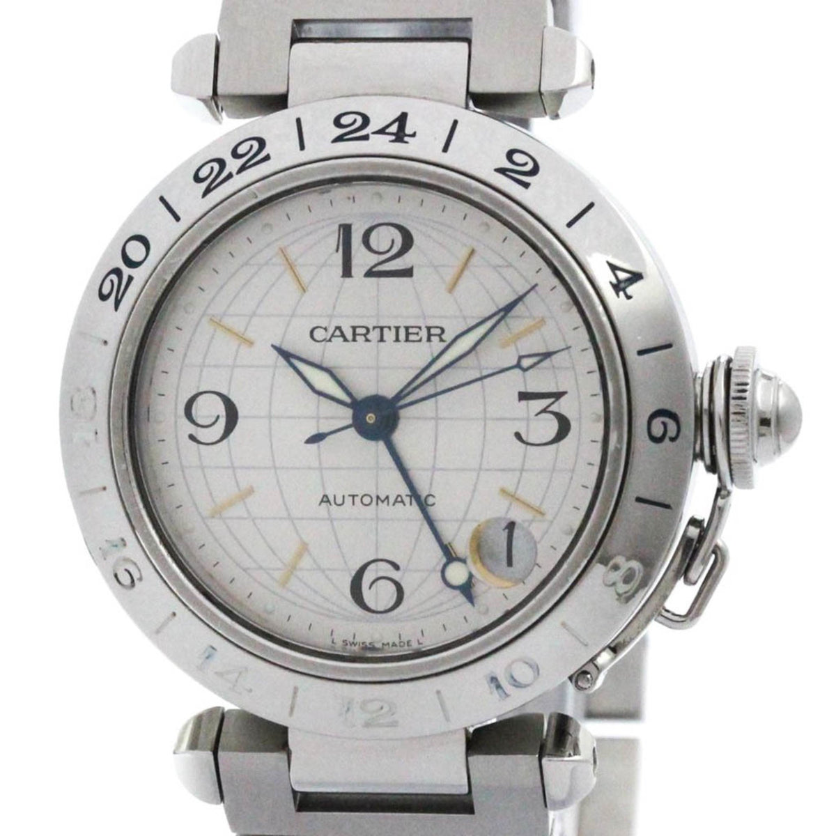 Pre-Owned Polished CARTIER Pasha C Meridian Steel Automatic Unisex Watch W31029M7 BF575190