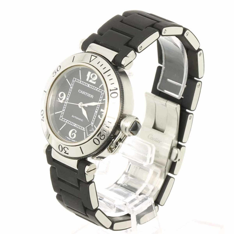 Pre-Owned Cartier Pasha Seatimer W31077U2 Men's Watch with Date Display, Black, Automatic Movement