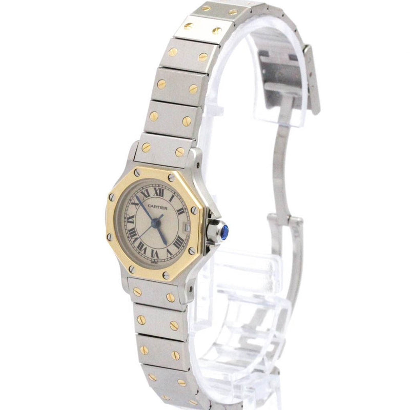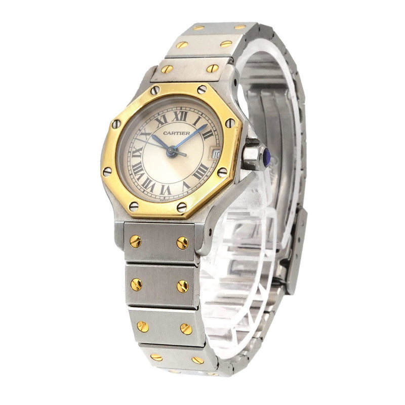 Pre-Owned CARTIER Santos Octagon 18K Gold Steel Quartz Ladies Watch 187903 Polished