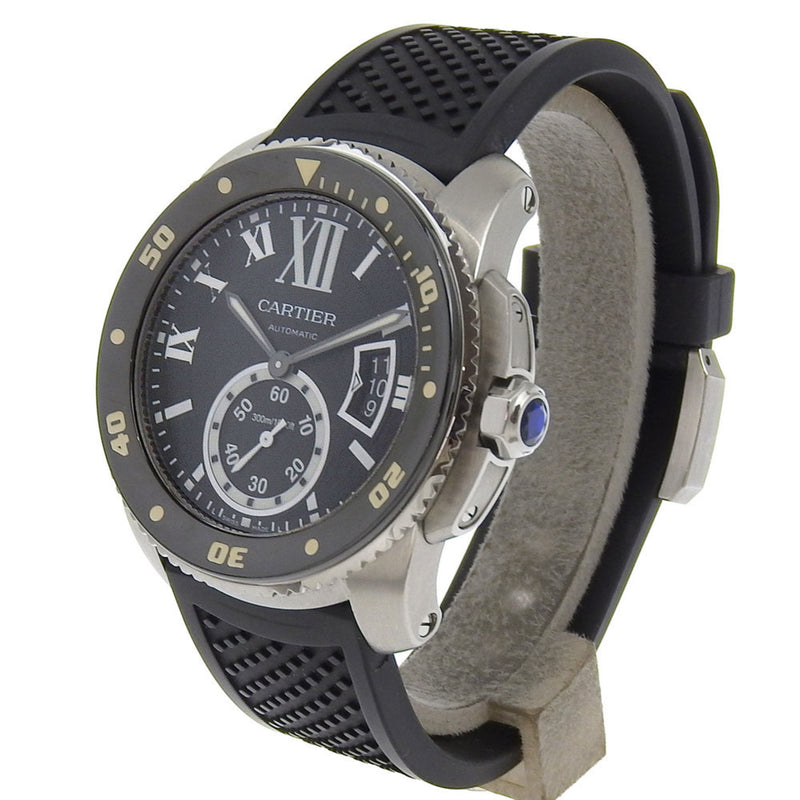 Pre-Owned CARTIER Caliber Diver Wristwatch W7100056 Stainless Steel x Rubber Automatic Black Dial Men's