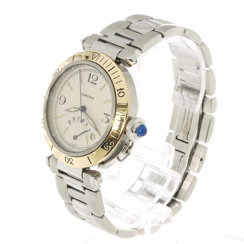 Pre-Owned Cartier Pasha 38mm Two-tone Men's Watch W31012H3, Date, Ivory, 18K Yellow Gold, Power Reserve, Automatic