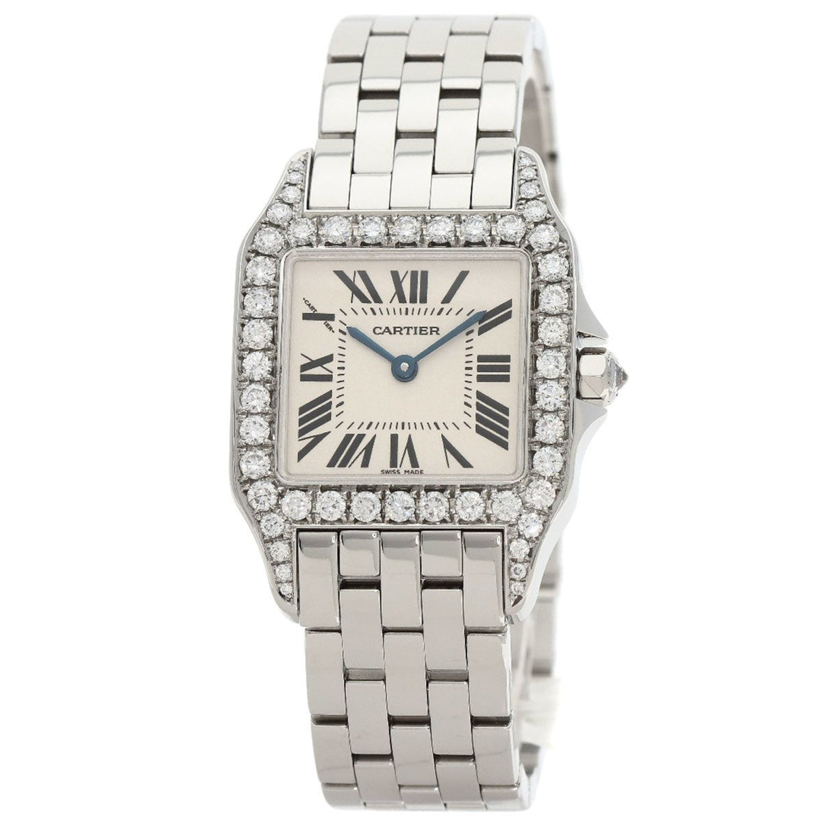 Pre-Owned Cartier WF9003YC Santos Demoiselle SM Diamond Watch 18K White Gold K18WG Women's CARTIER