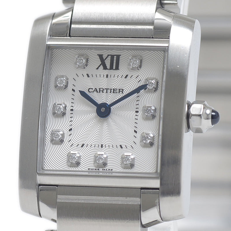 Pre-Owned CARTIER Tank Francaise SM Diamond Bezel Watch Stainless Steel Ladies Silver W4TA0008