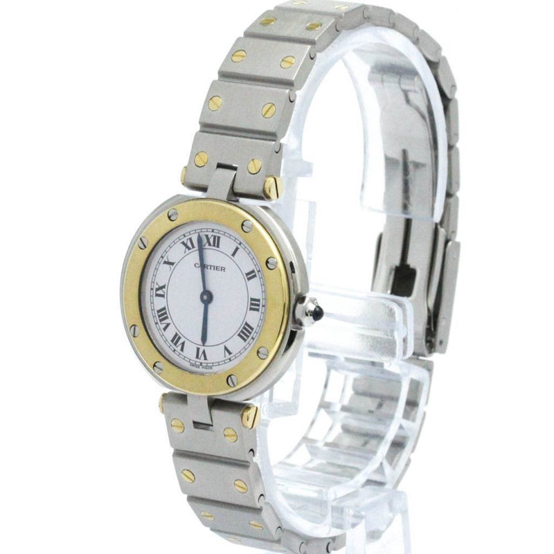 Pre-Owned CARTIER Santos Round 18K Gold Steel Quartz Ladies Watch Polished