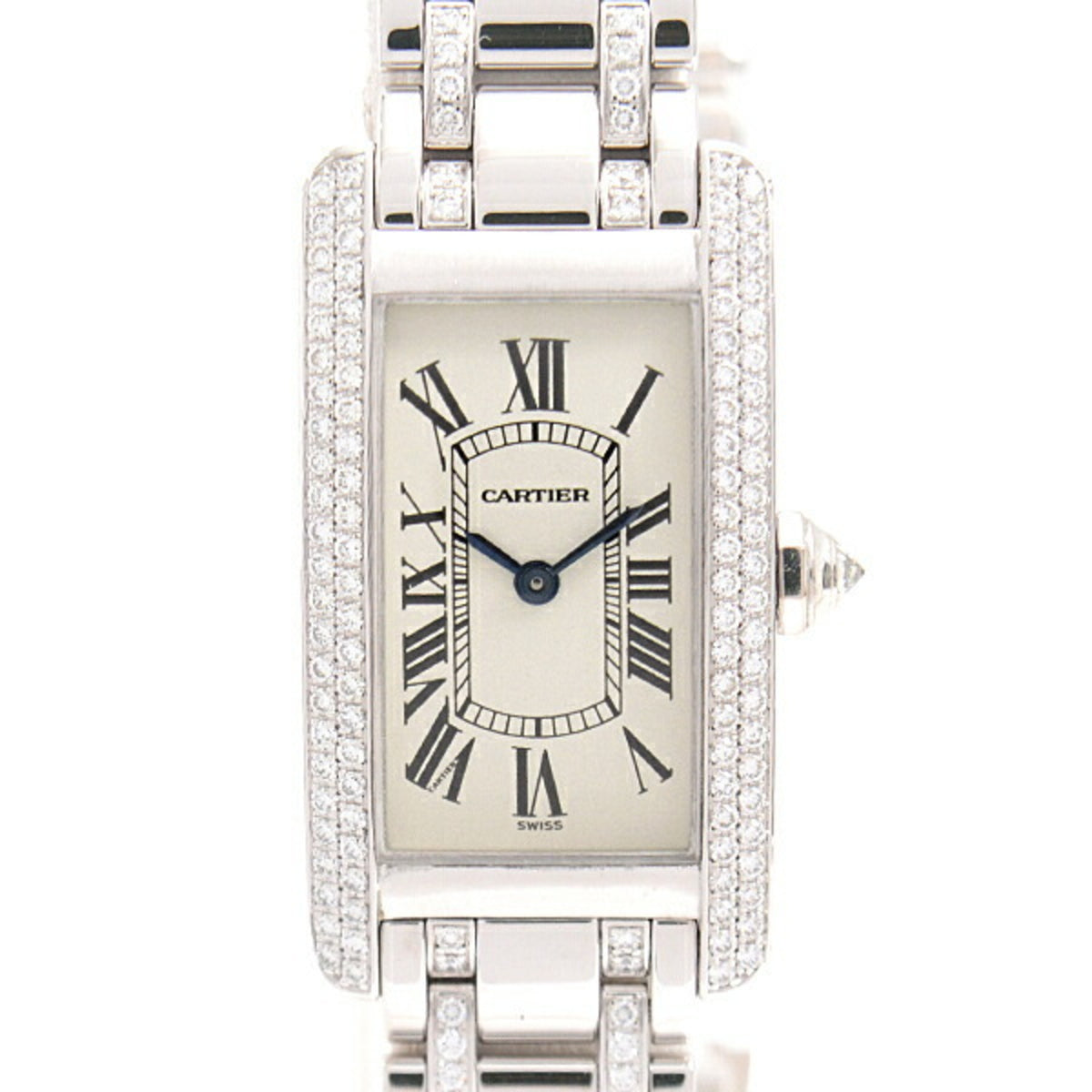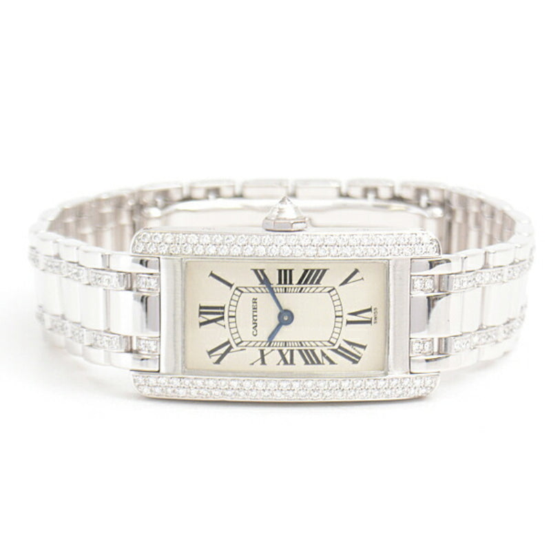 Pre-Owned Cartier Women's Watch Tank Americaine SM Genuine Diamond Battery Operated White Gold 750WG Ivory Dial