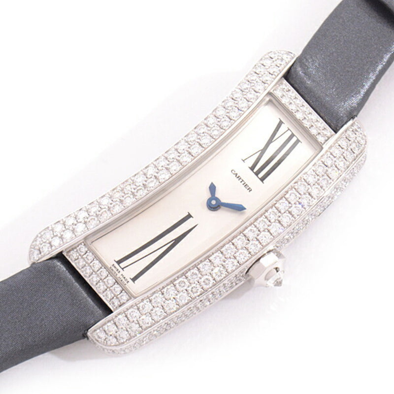 Pre-Owned Cartier Women's Watch Tank S Double Diamond Bezel White Gold Battery Operated Silver Dial WJ300950 750WG