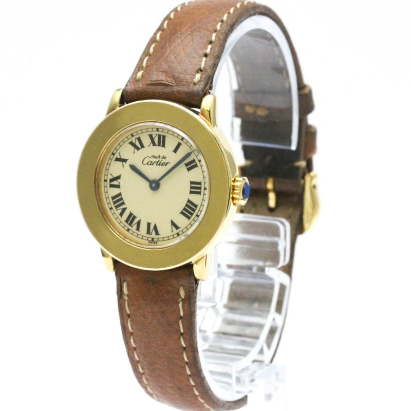 Pre-Owned CARTIER Must Gold Plated Leather Quartz Ladies Watch W1008743