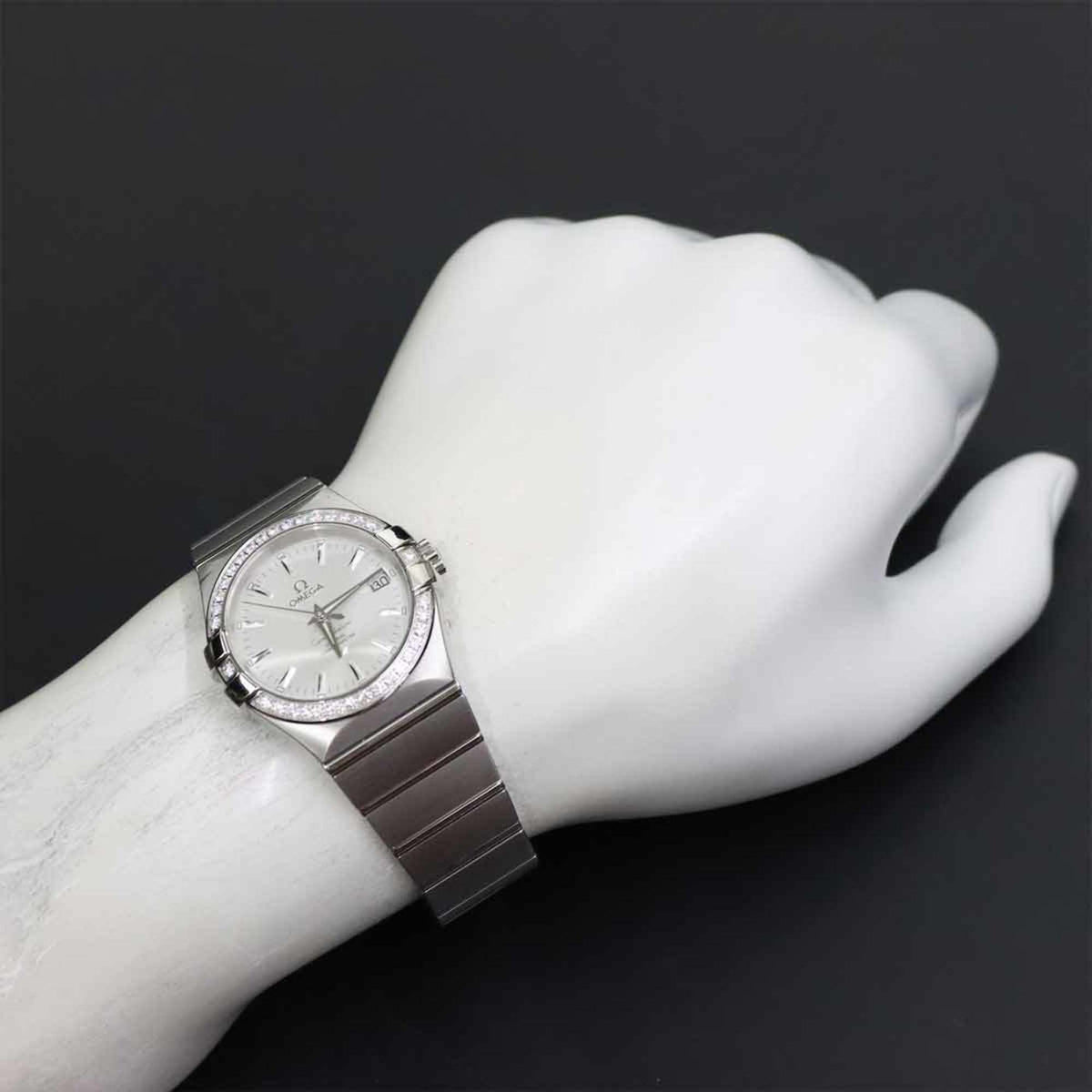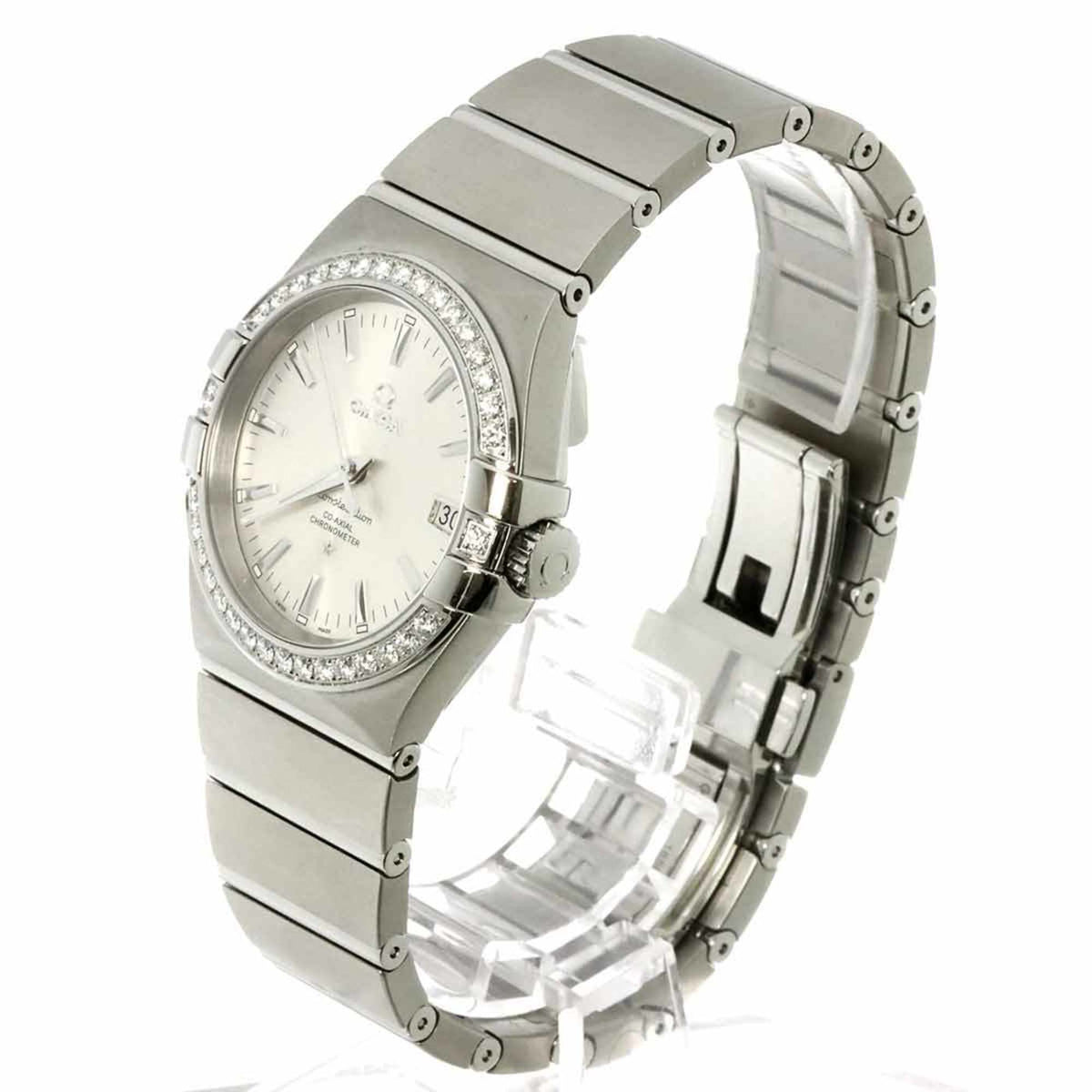 Pre-Owned OMEGA Constellation Co-Axial Chronometer 123 15 35 20 02 001 Men's Watch with Diamond Bezel, Date Display, Silver, Automatic