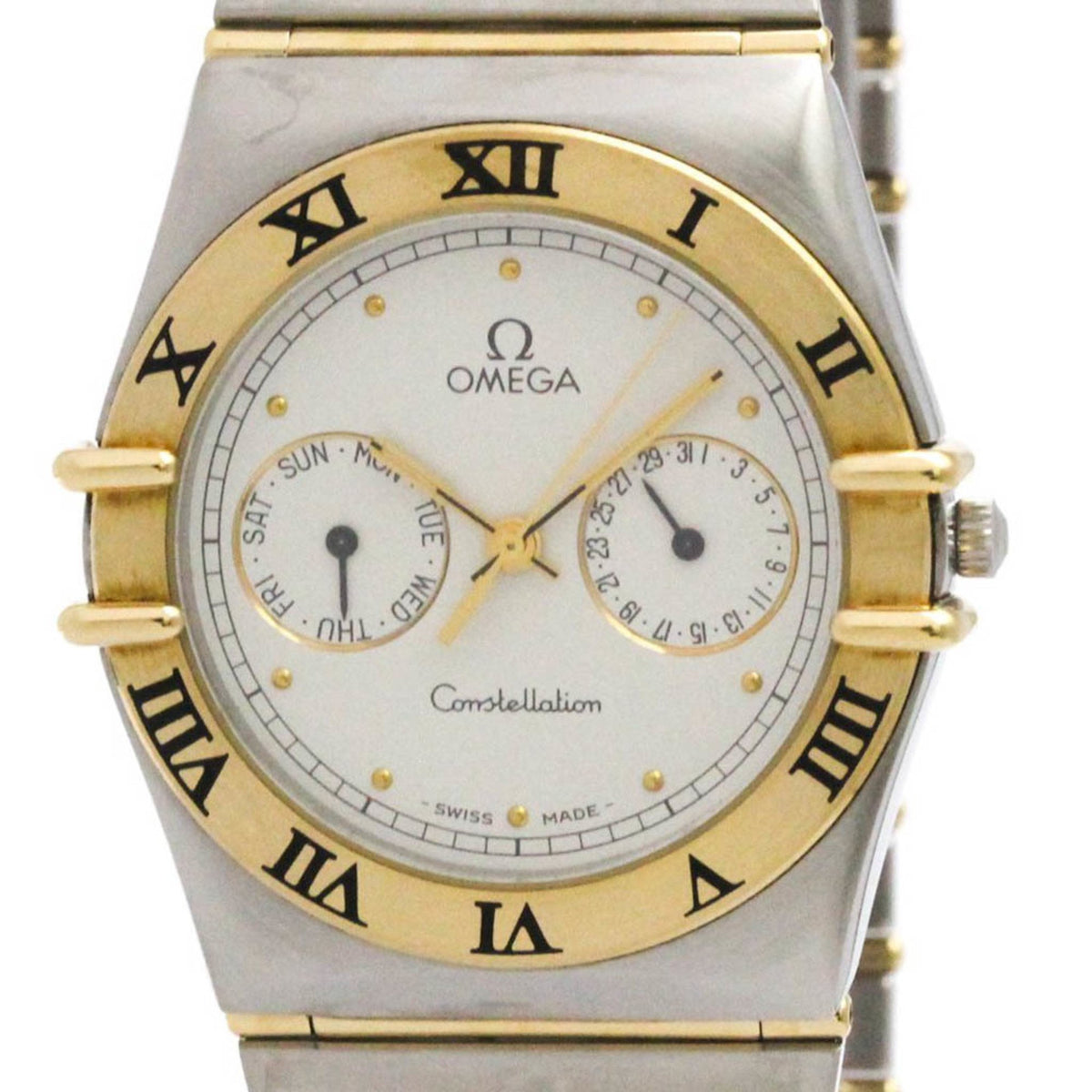 Pre-Owned OMEGA Constellation Day Date 18K Gold Steel Watch 396.1069 Polished