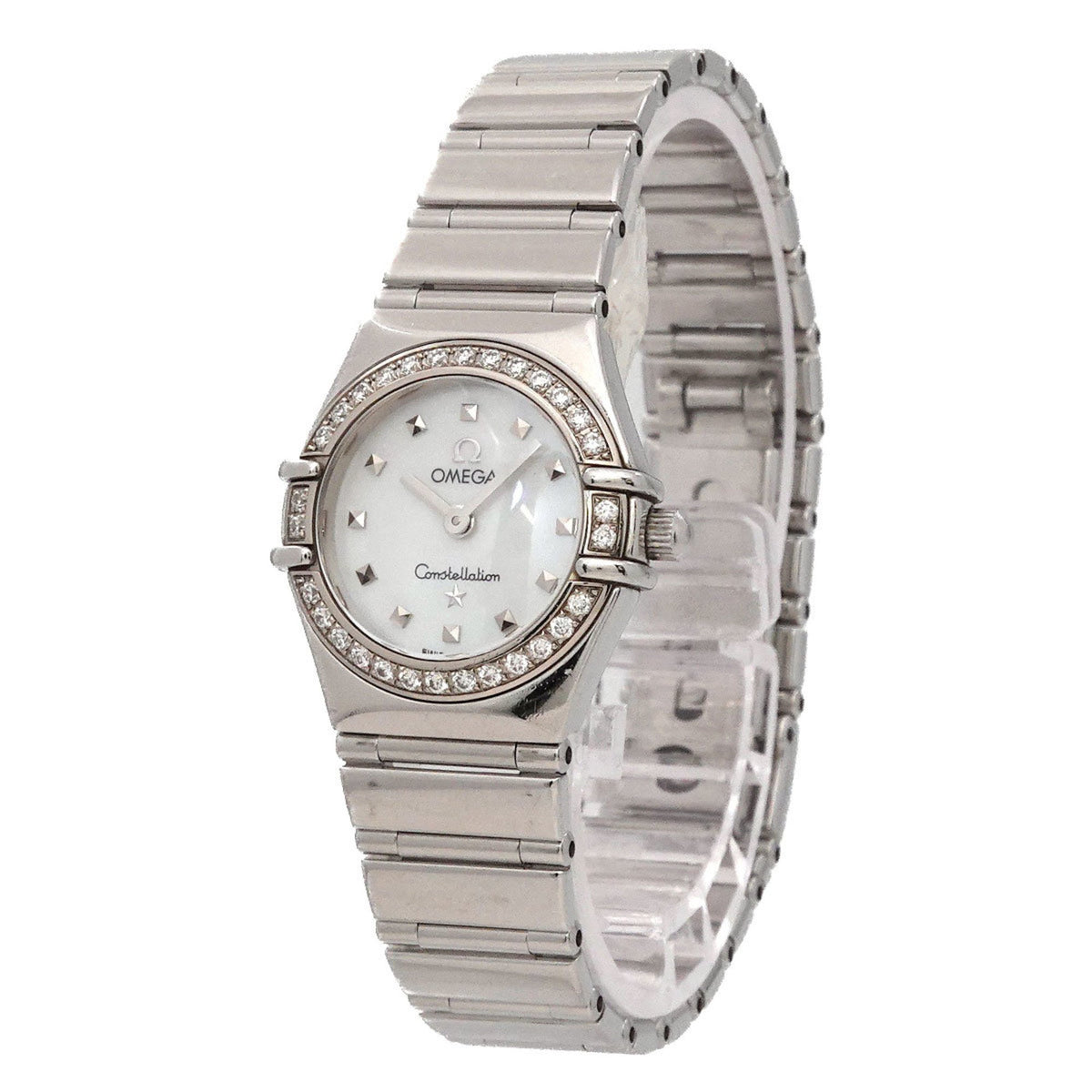 Pre-Owned OMEGA Constellation Mini My Choice 1465 71 Diamond Bezel Ladies Watch White Shell Quartz