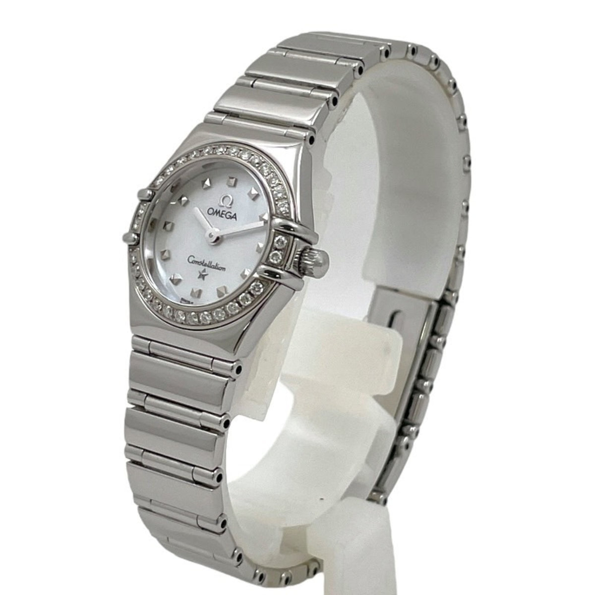 Pre-Owned OMEGA Constellation Mini My Choice 1465.71 Stainless Steel Women's Quartz Watch with Shell Dial and Diamond Bezel