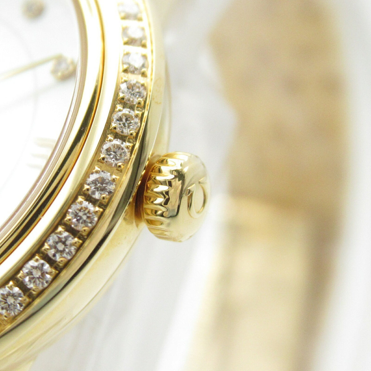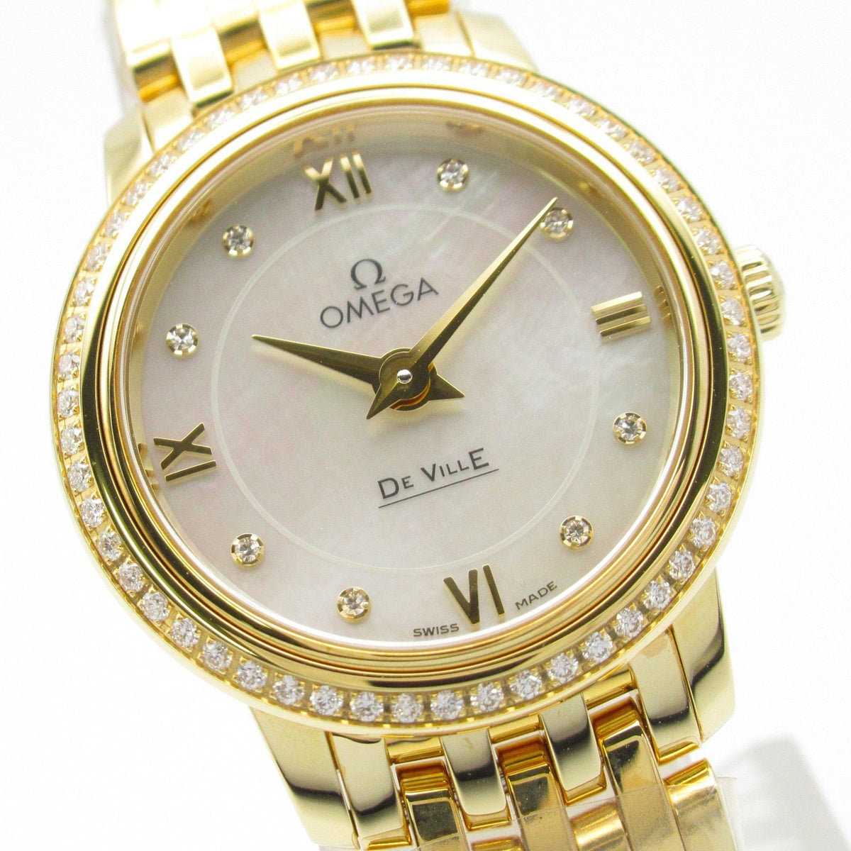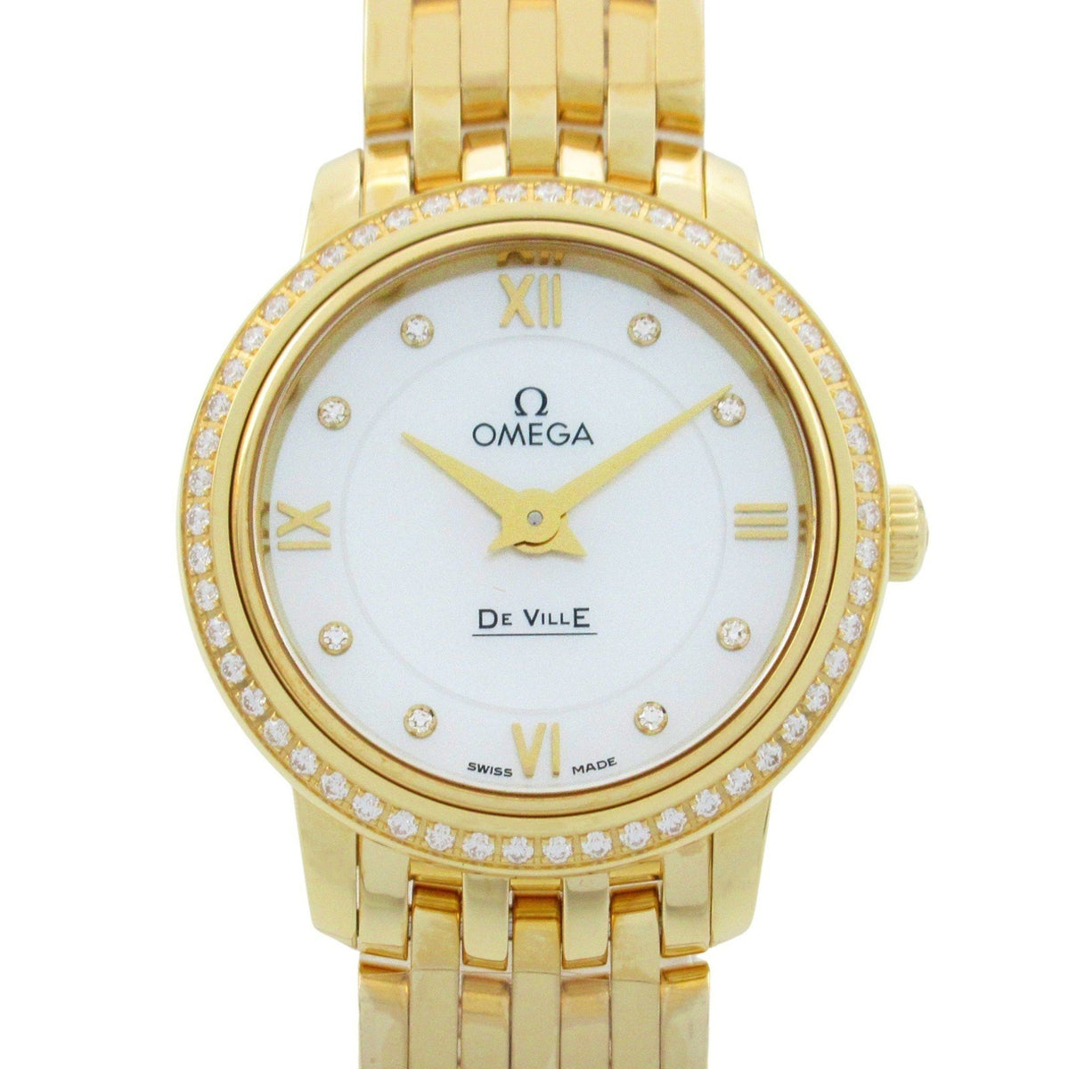 Pre-Owned OMEGA De Ville Prestige Diamond Bezel Watch 18K Yellow Gold Ladies White Shell 424.55.24.60.55.001