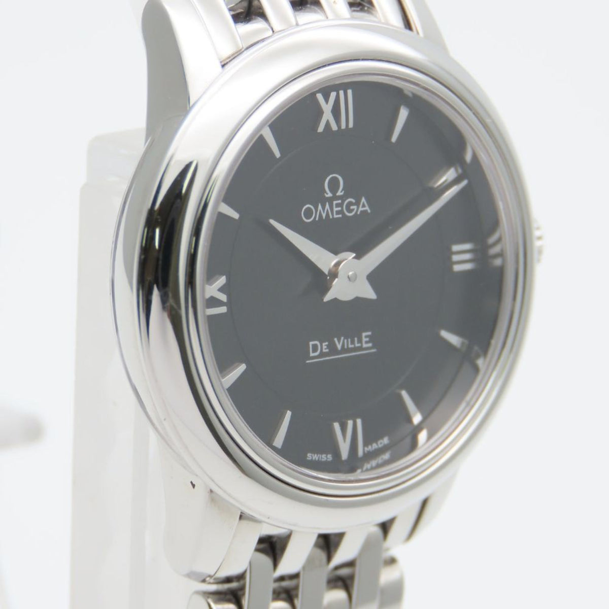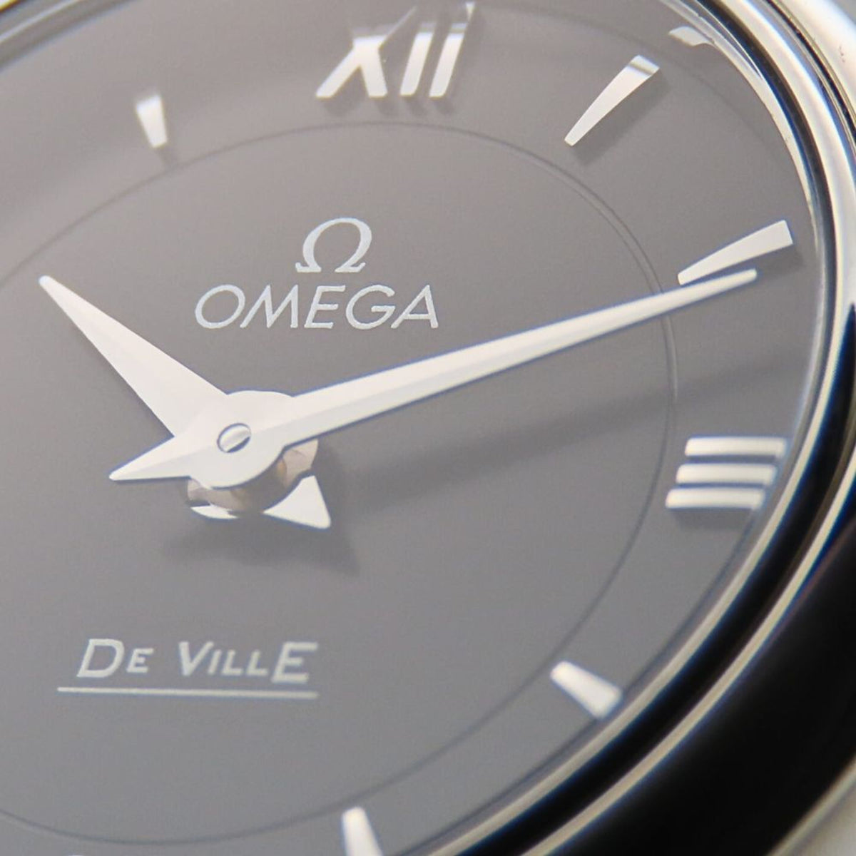 Pre-Owned OMEGA Prestige De Ville Stainless Steel Watch with Silver Dial and Black for Women